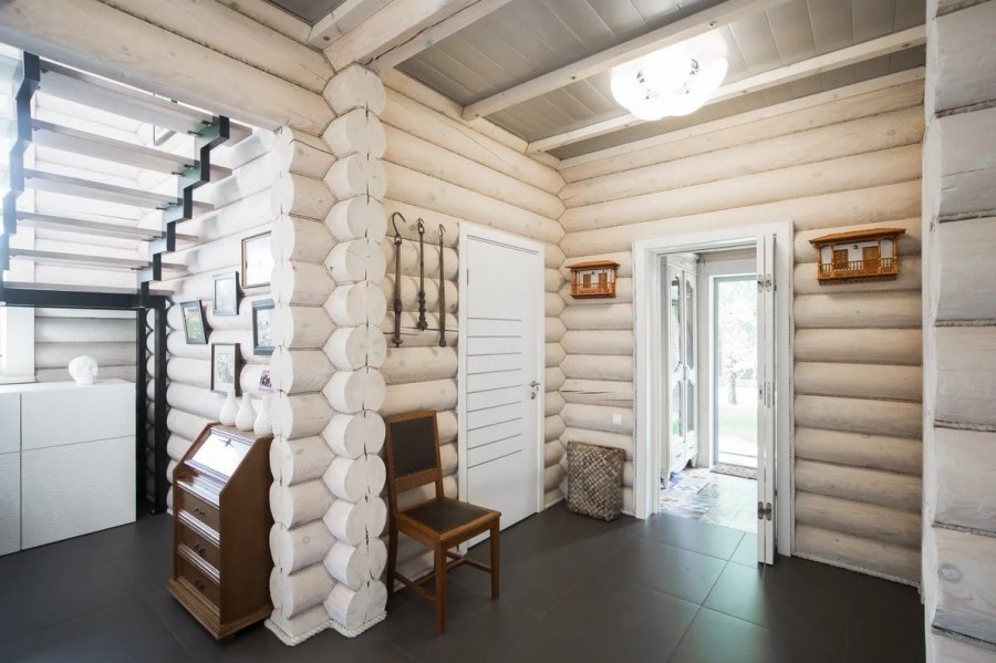 Бревенчатый дом белый интерьер