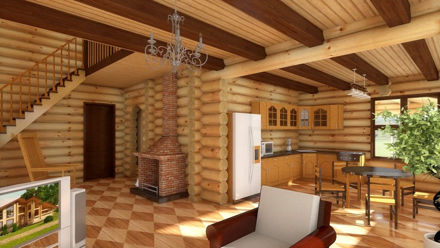 Интерьер дома из бревна