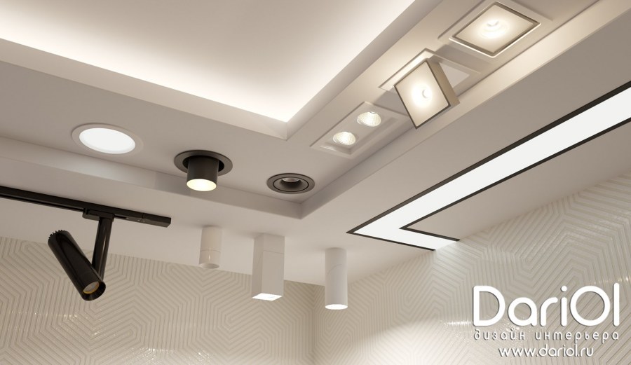 Встроенные светильники потолочные в интерьере