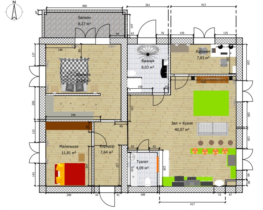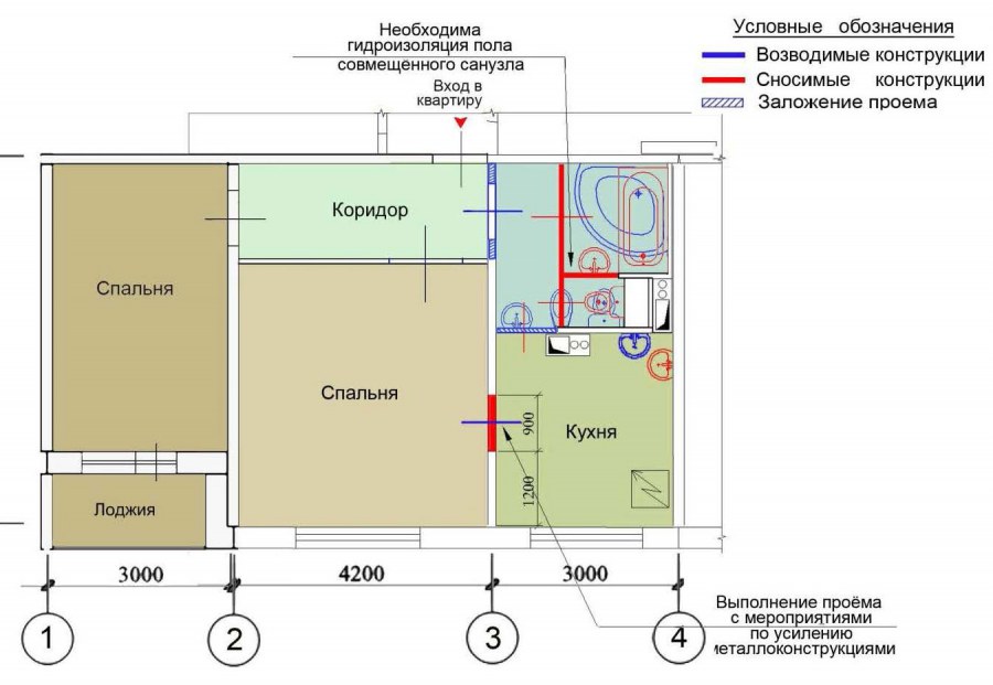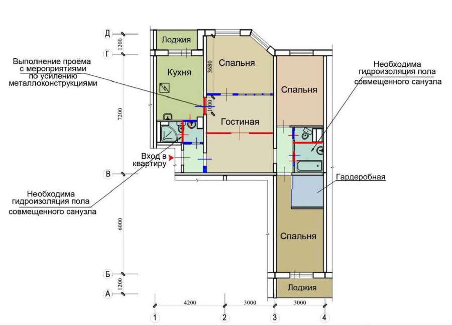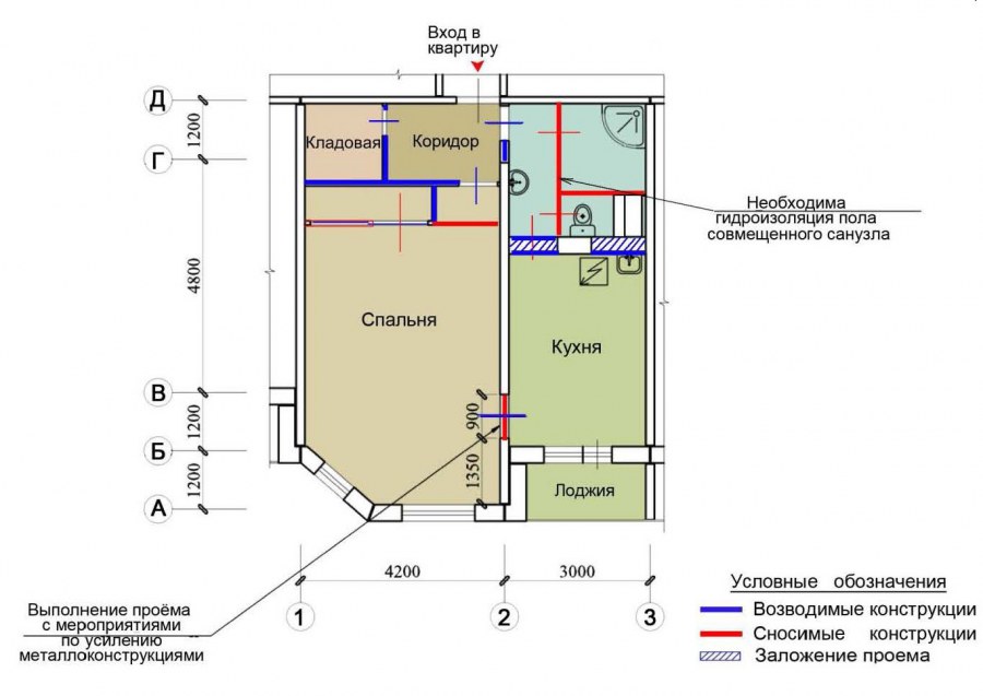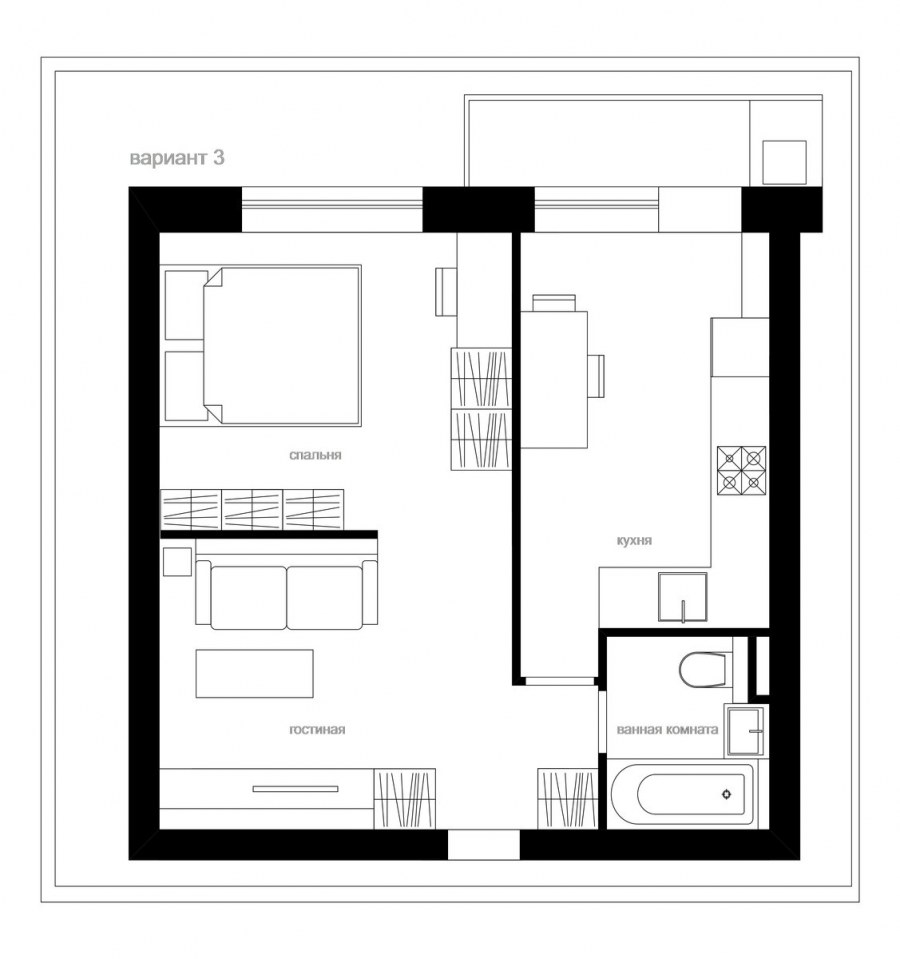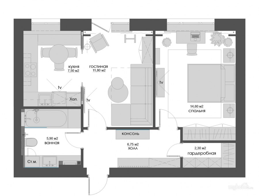Перепланировка двухкомнатной квартиры 46 кв метров