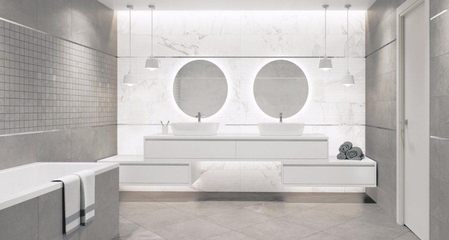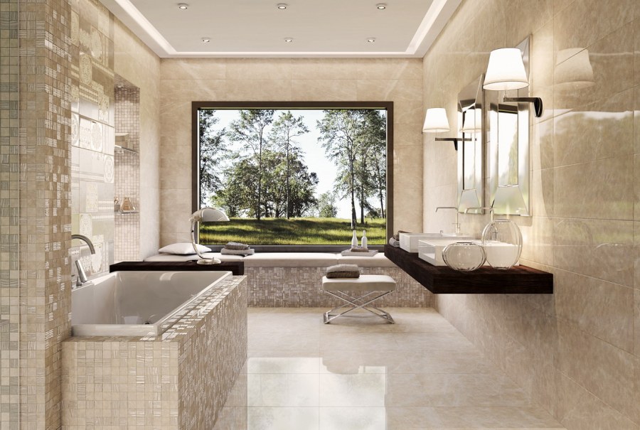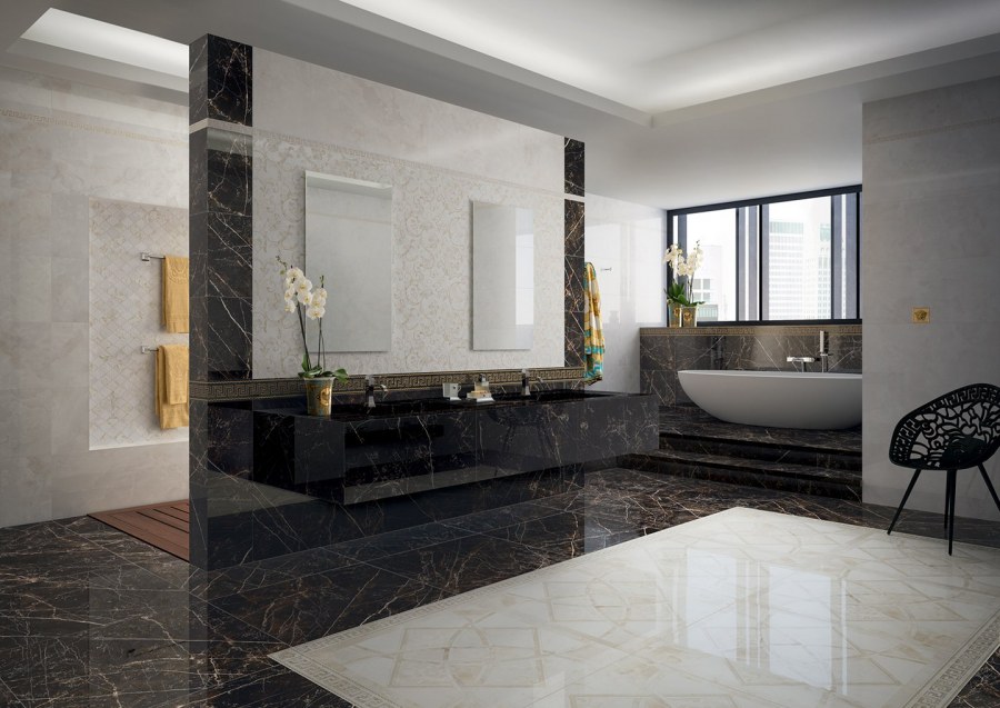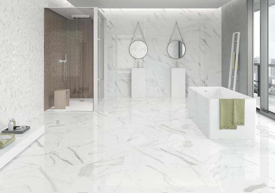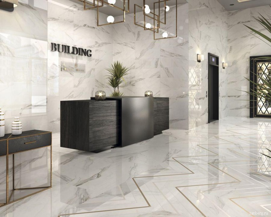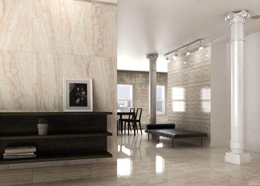 Интерьеры с керамогранитом под мрамор (71 фото)