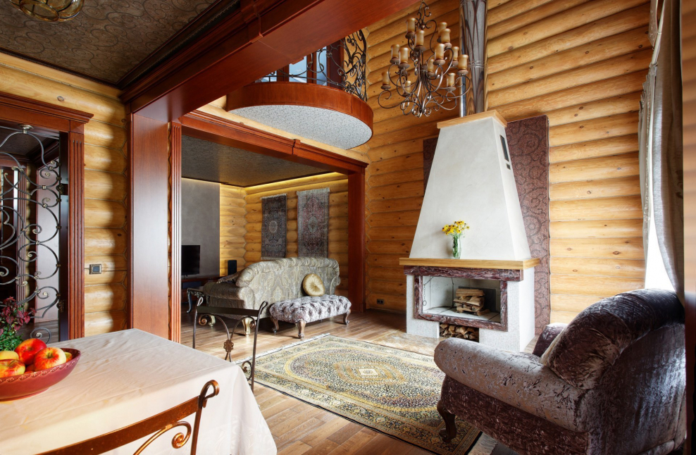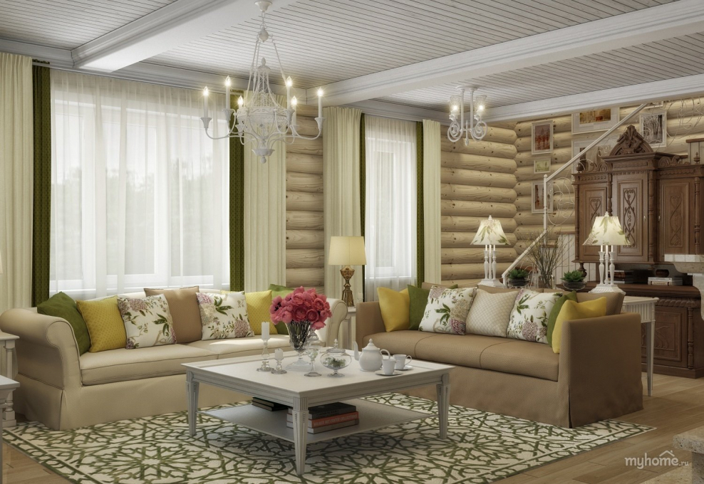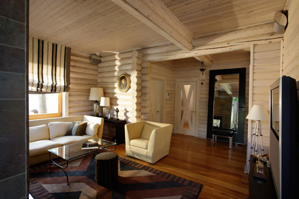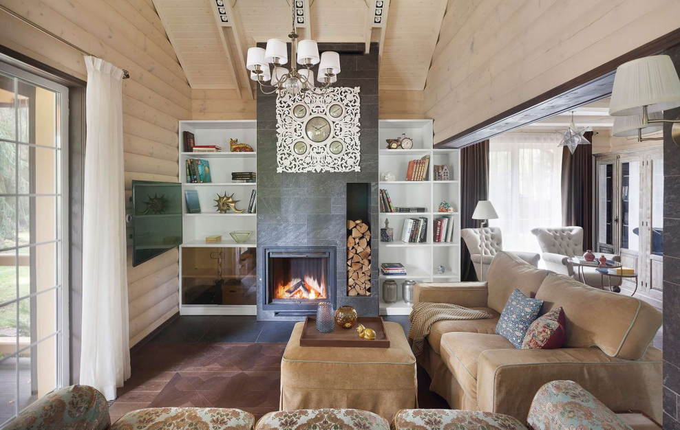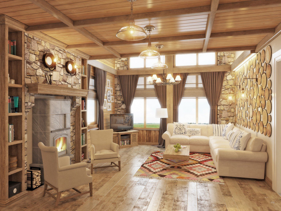 Интерьер гостиной на даче в деревянном доме (56 фото)