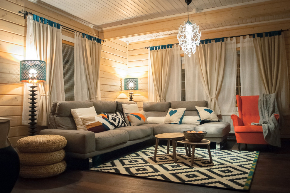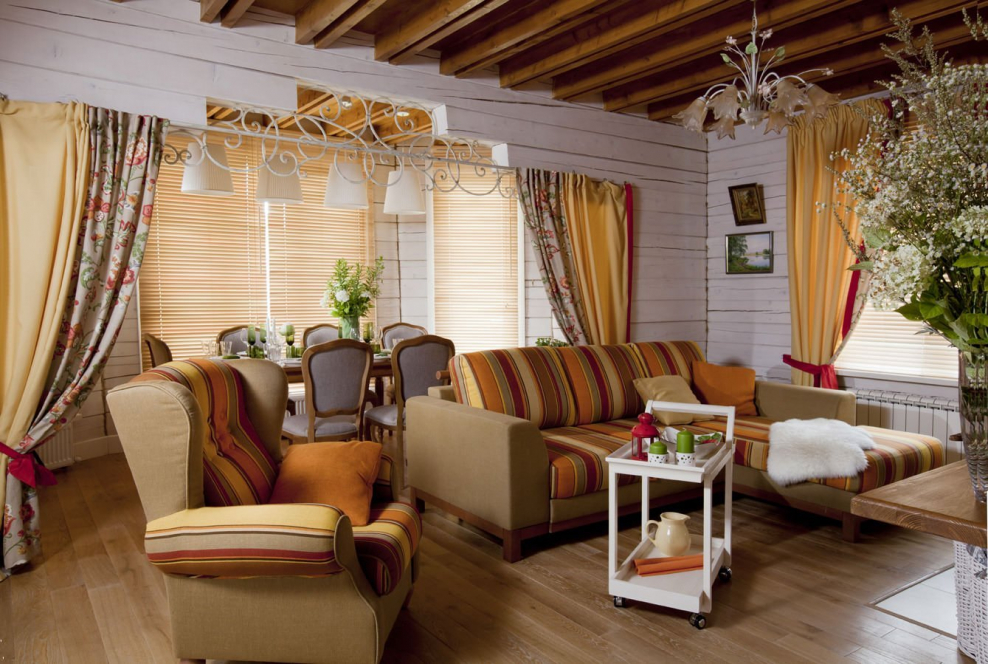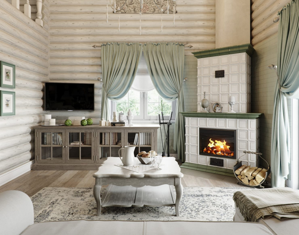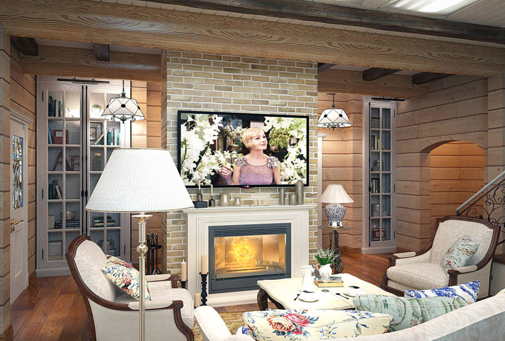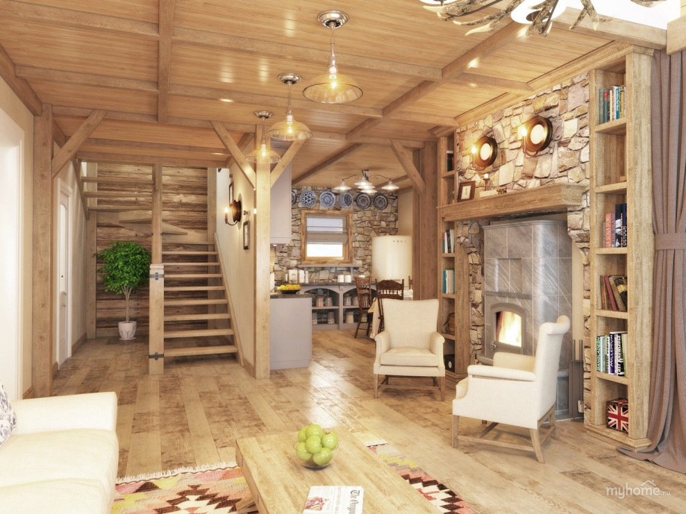 Интерьер гостиной на даче в деревянном доме (56 фото)