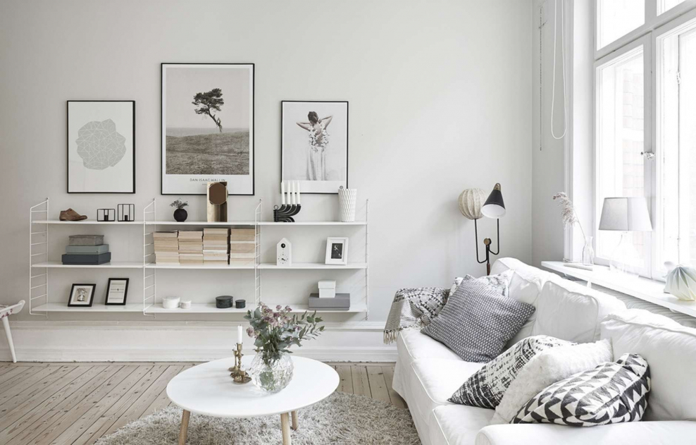 Декорирование стен в гостиной в скандинавском стиле