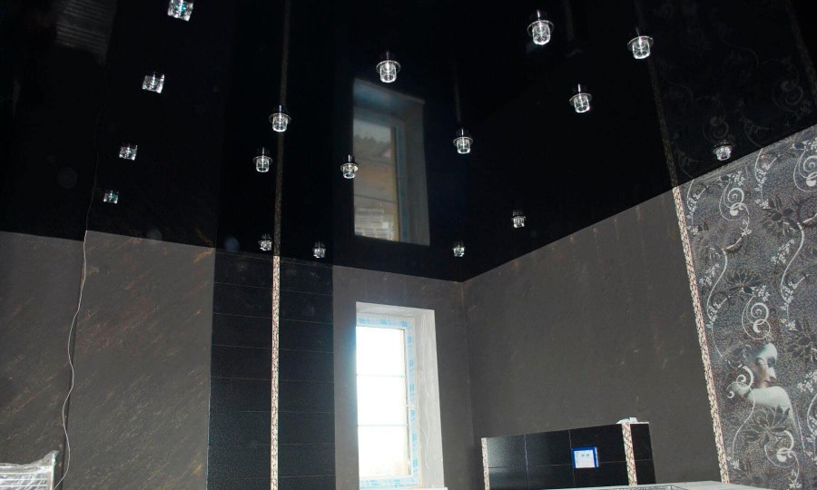 Натяжной потолок серый глянец в интерьере (69 фото)