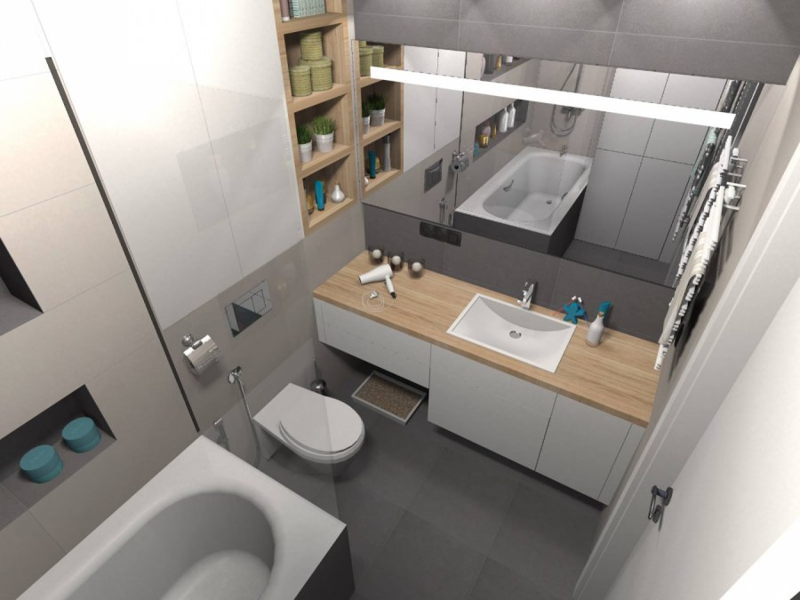 Планировка узкой ванной комнаты
