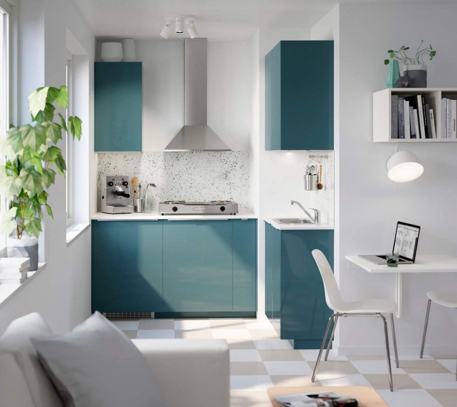 Бирюзовая кухня икеа в интерьере