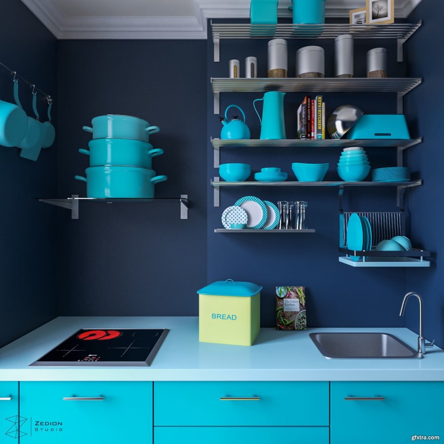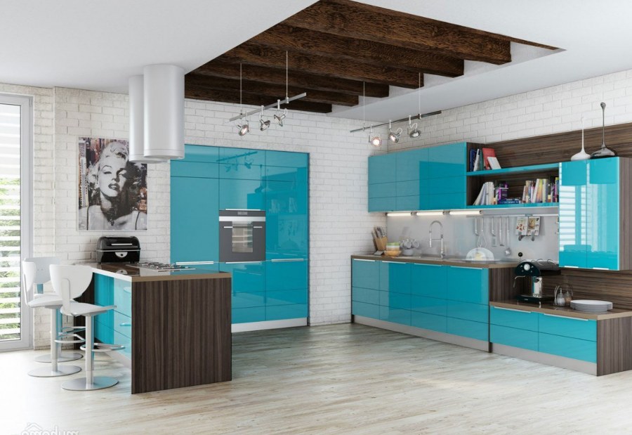 Кухня синяя бирюза