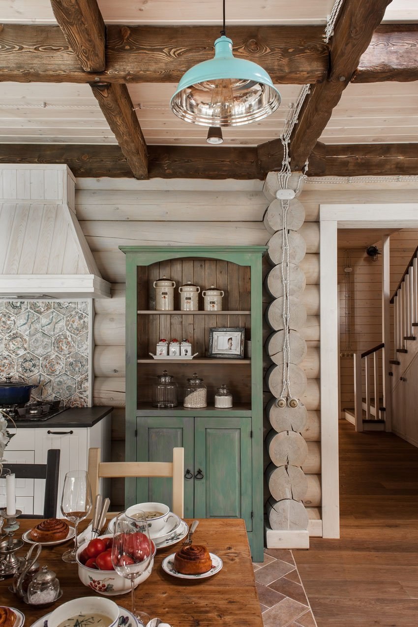 Кухня в загородном доме из клееного бруса в стиле Прованс