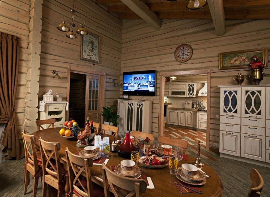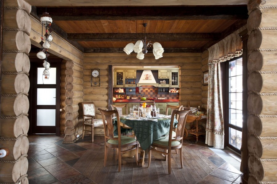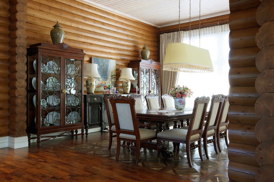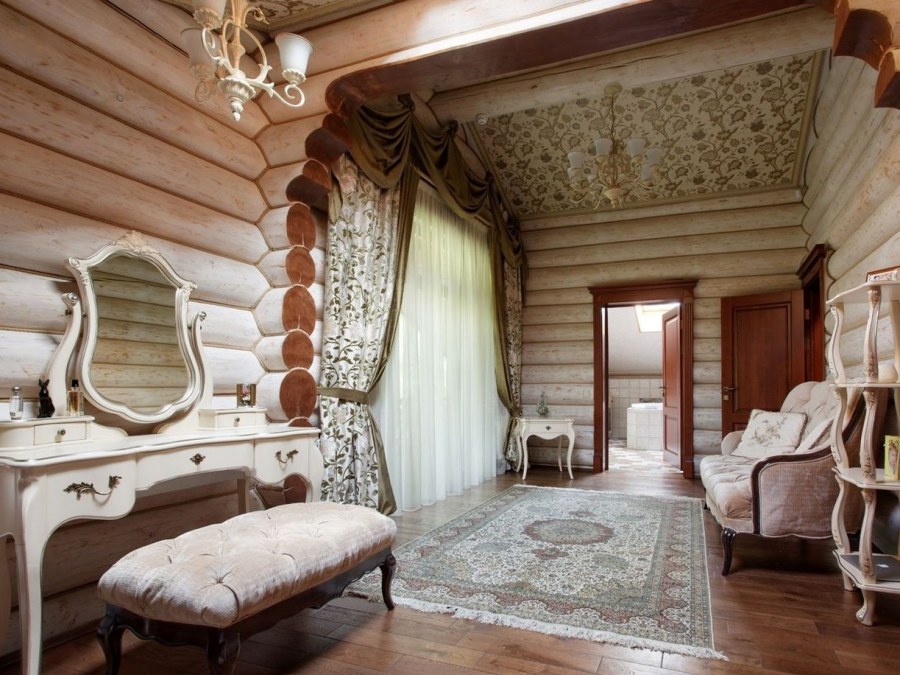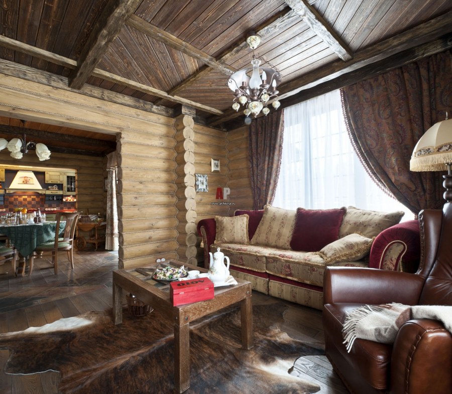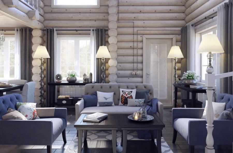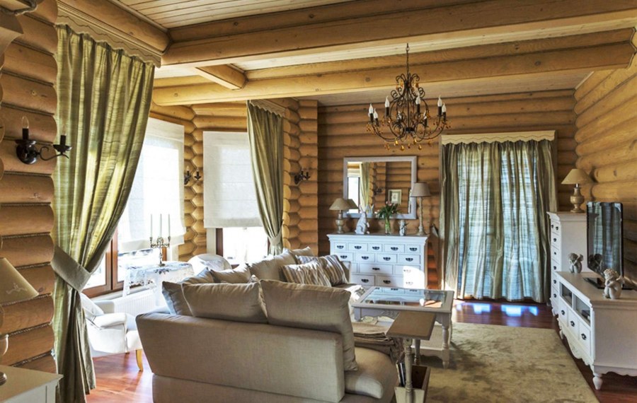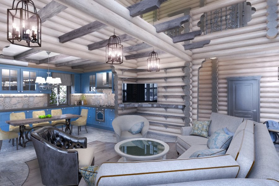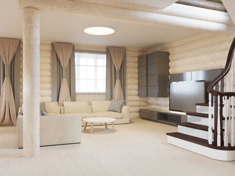 Интерьер дома из оцилиндрованного бревна со вторым светом