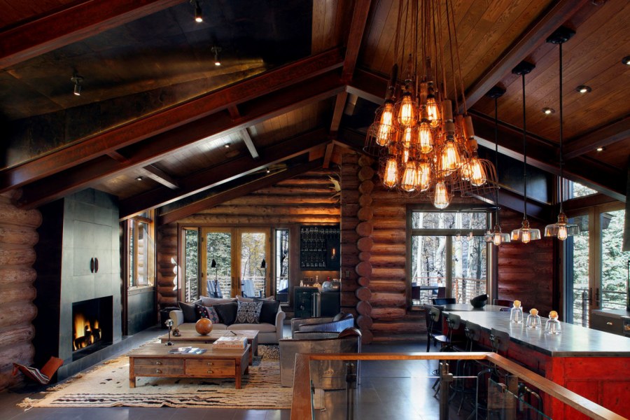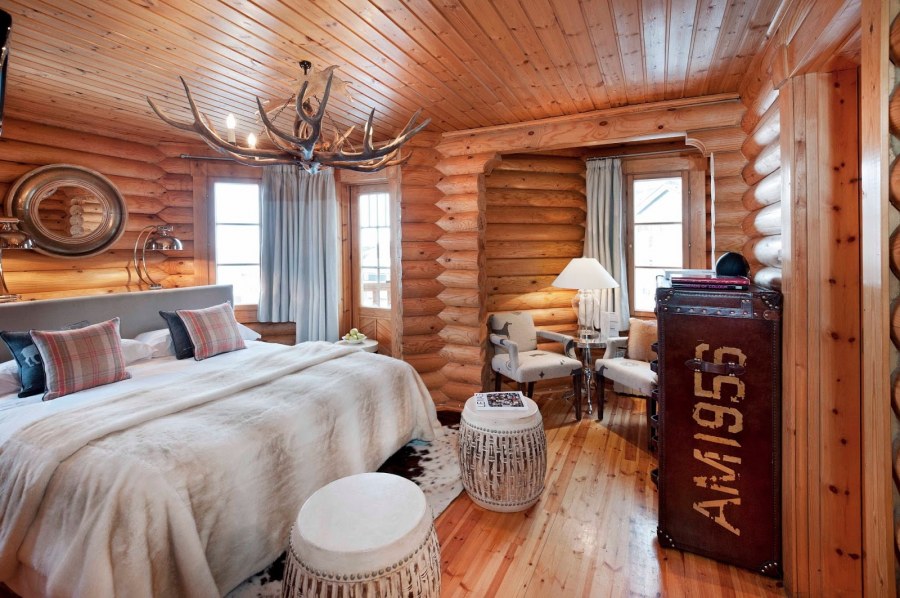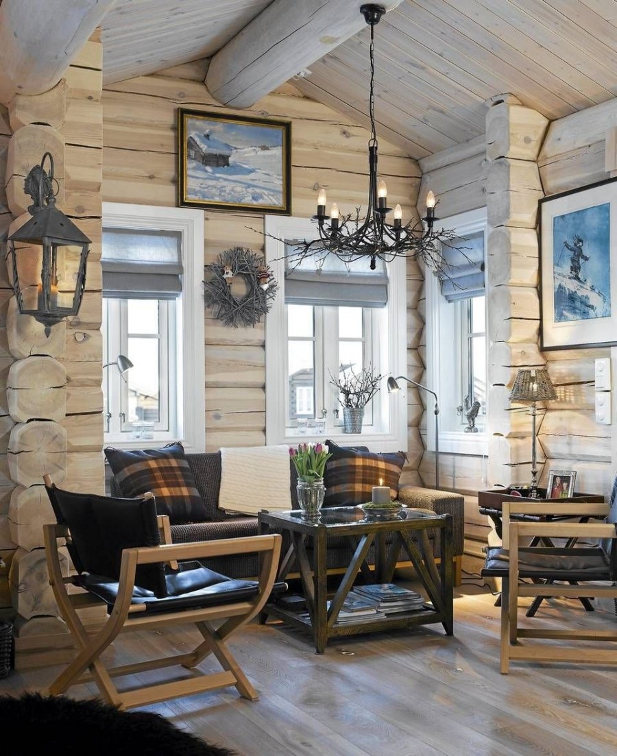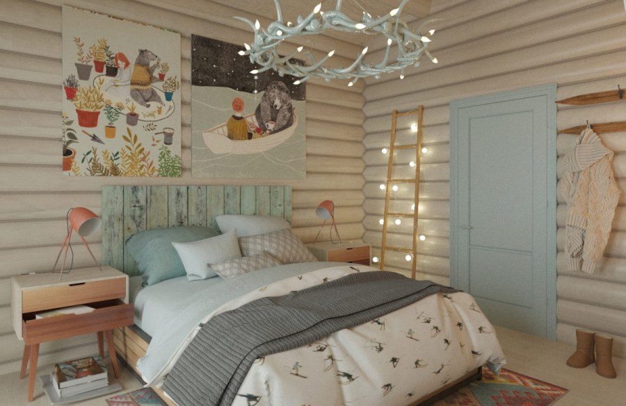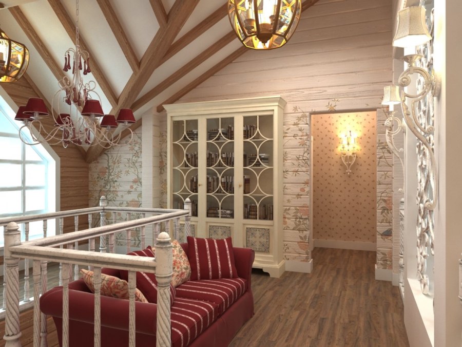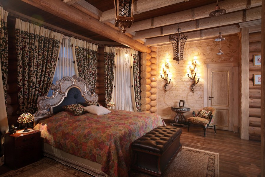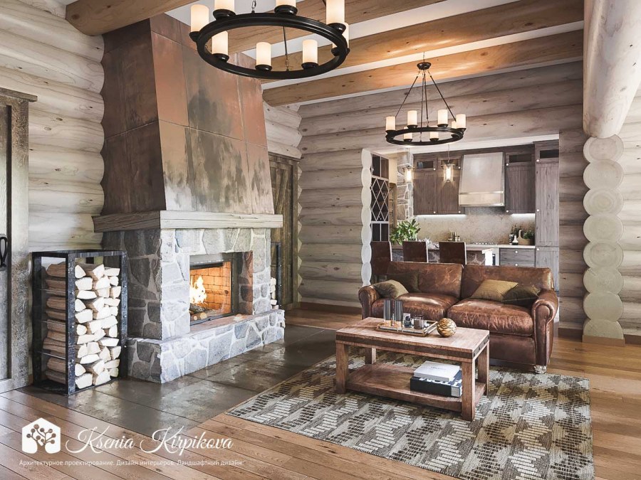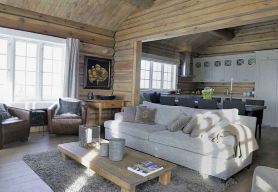 Интерьер дома из оцилиндрованного бревна со вторым светом