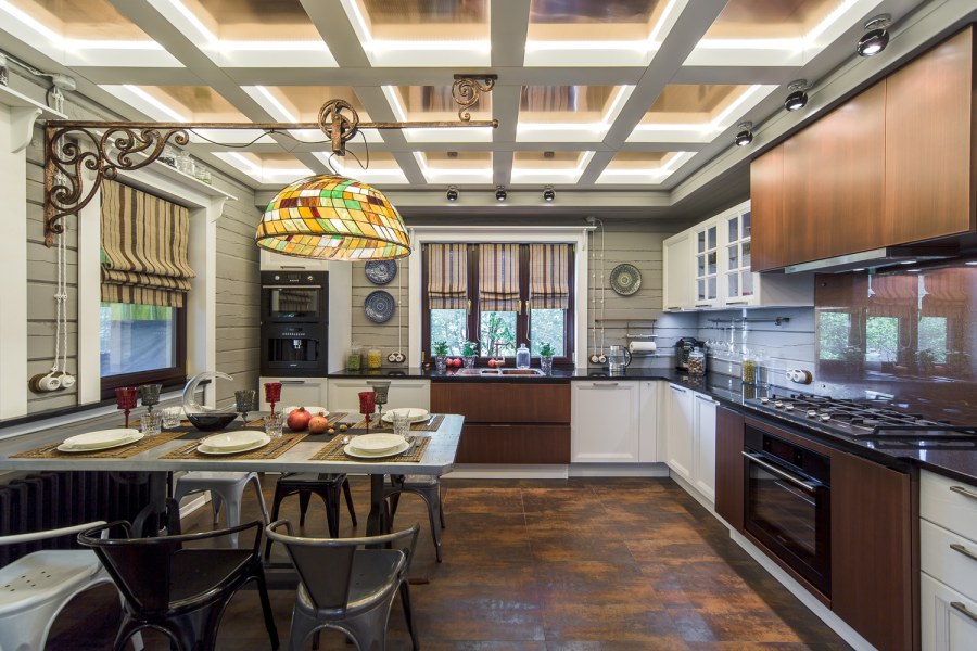 Кессонный потолок на кухне