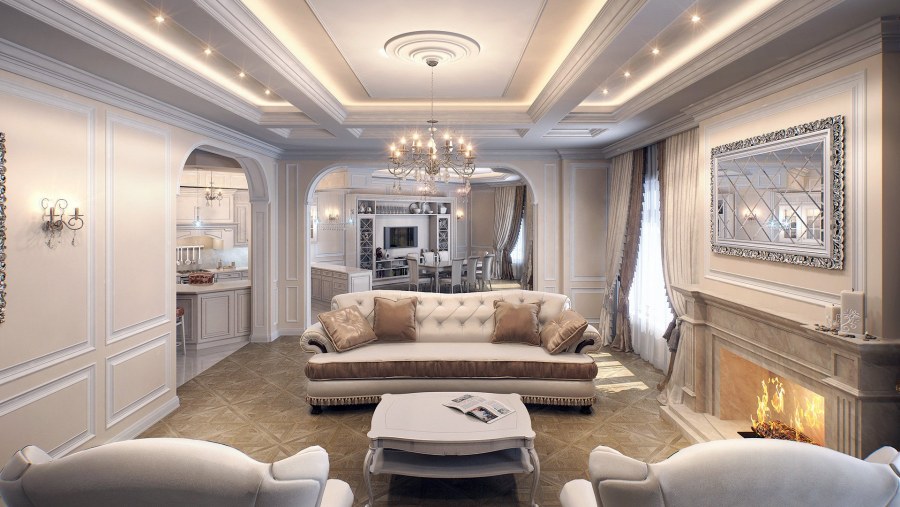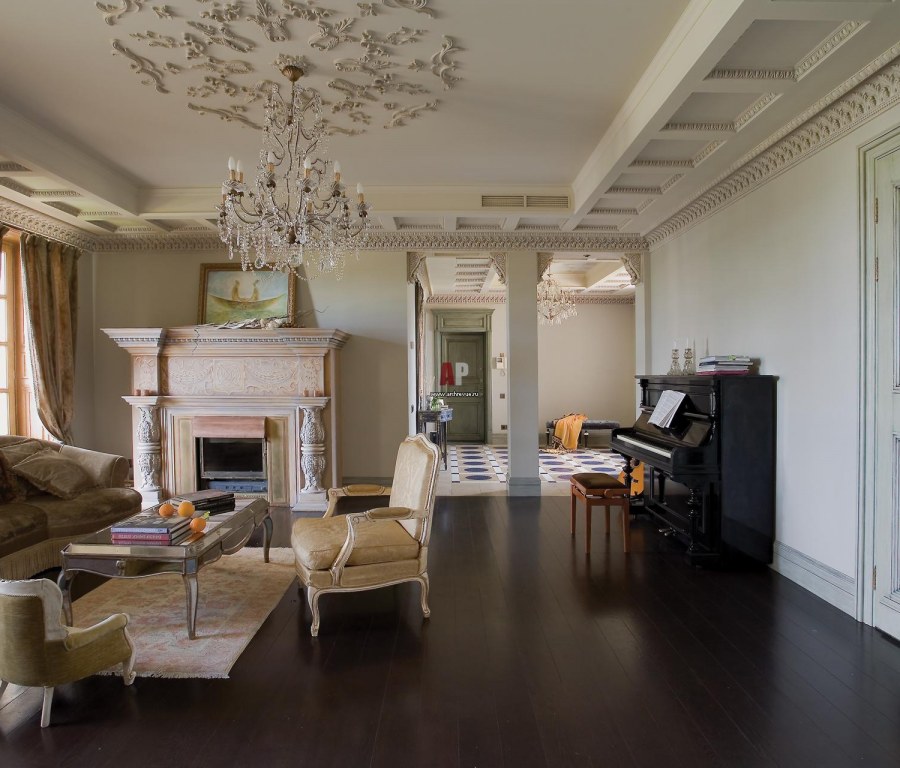 Потолок в классическом стиле в гостиной