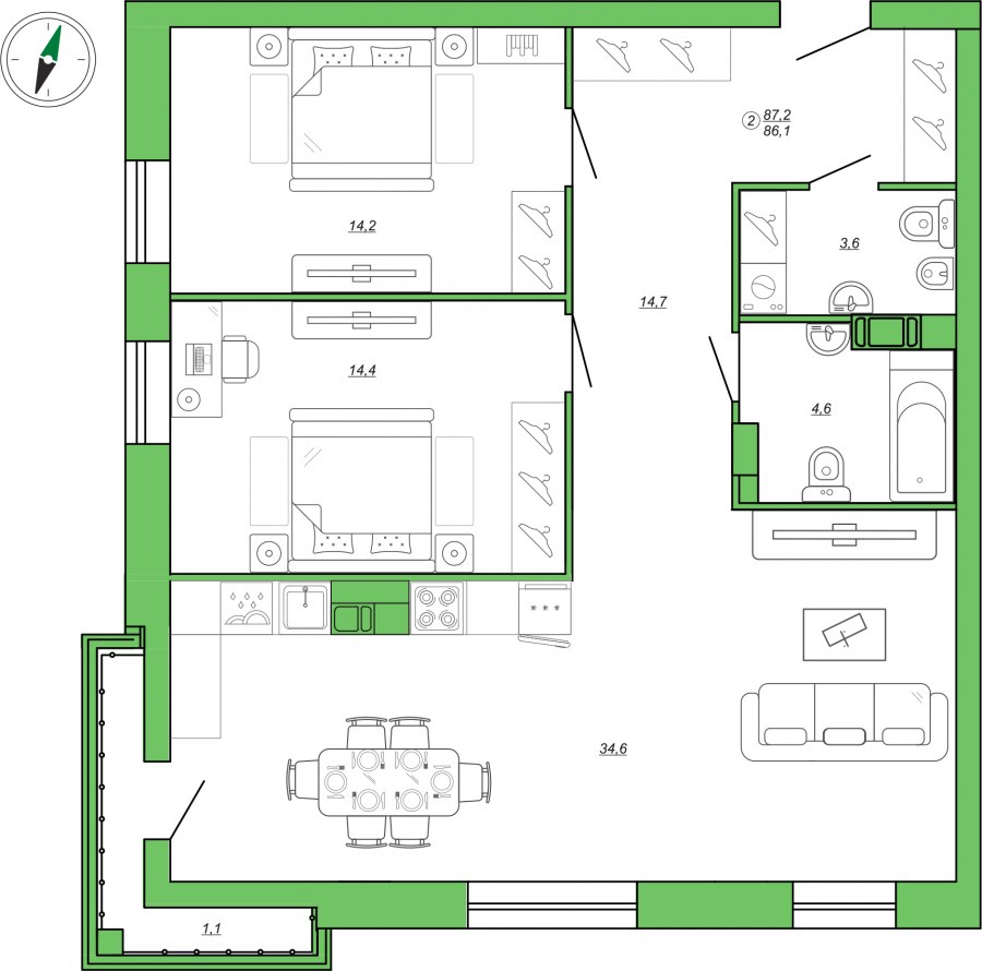 ЖК Гринвуд Тольятти двухэтажная квартира