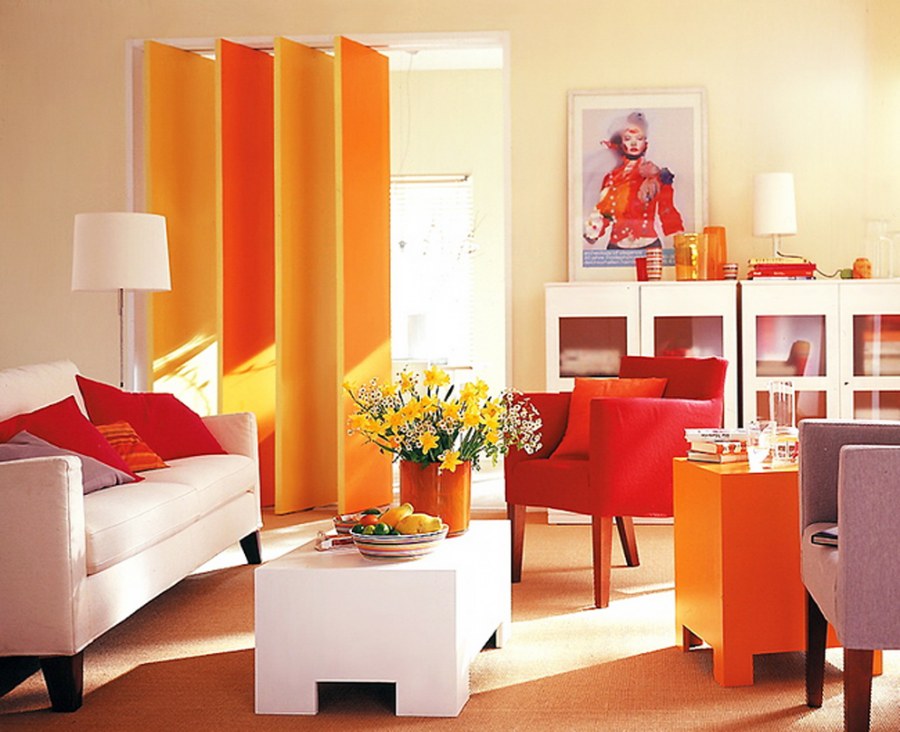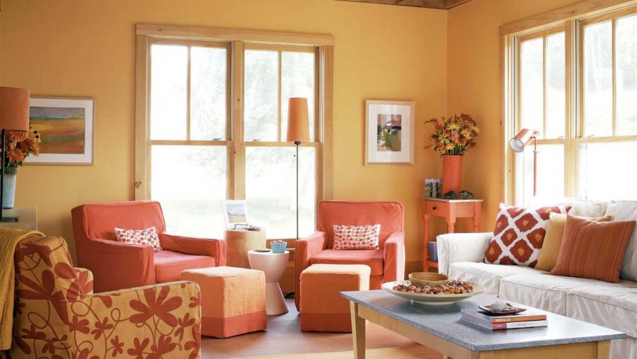 Оранжевый цвет однотонный в интерьере (66 фото)
