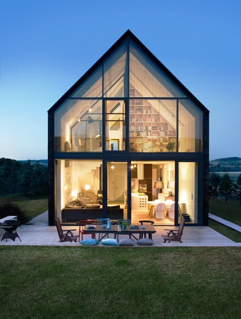 Небольшой домик с панорамными окнами