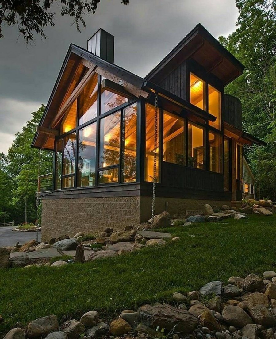 Маленький домик с панорамными окнами