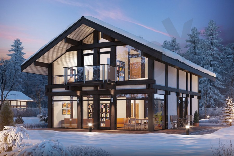 Дом в горах с панорамными окнами