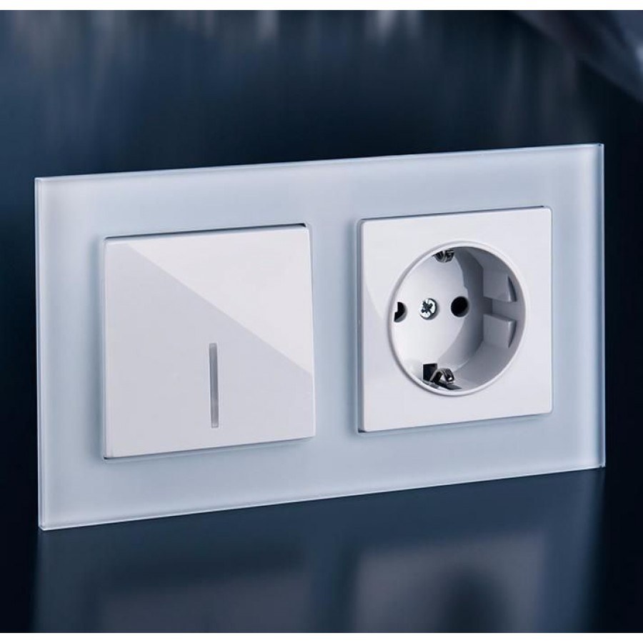 Розетка двойная с заземлением (белая) Werkel wl01-SKG-02-ip20 стеклянная рамка