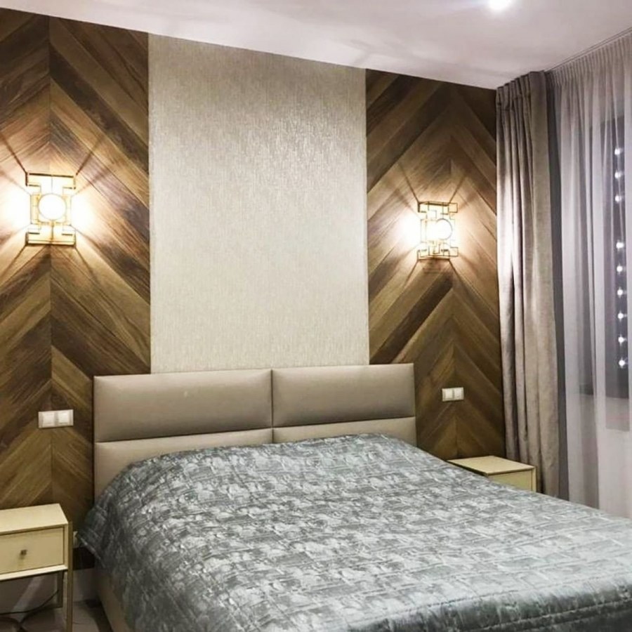 Ламинат на стене в спальне