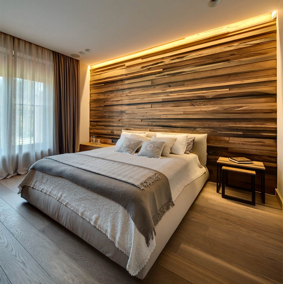 Деревянные рейки в спальне