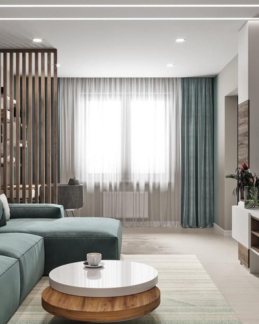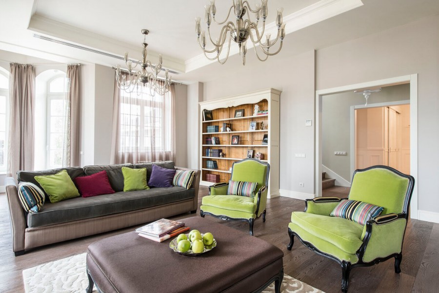 Гостиная с зелеными акцентами
