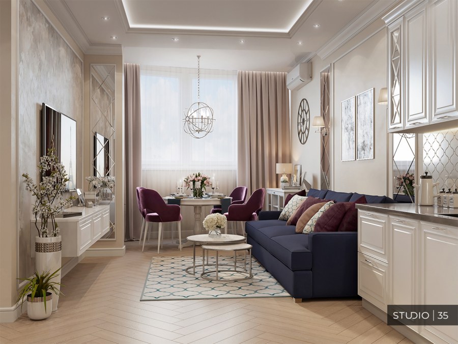 Кухня гостиная 27 кв м Неоклассика