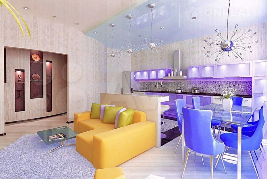 Яркая кухня гостиная