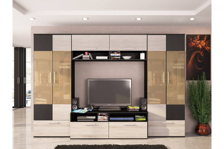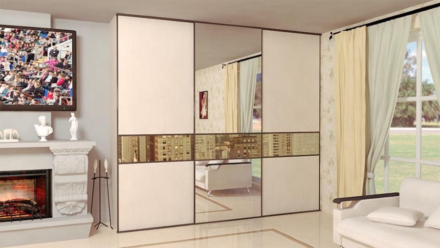 Шкаф-купе Валерия с нишей под ТВ 3000 (монорельс) ЛДСП