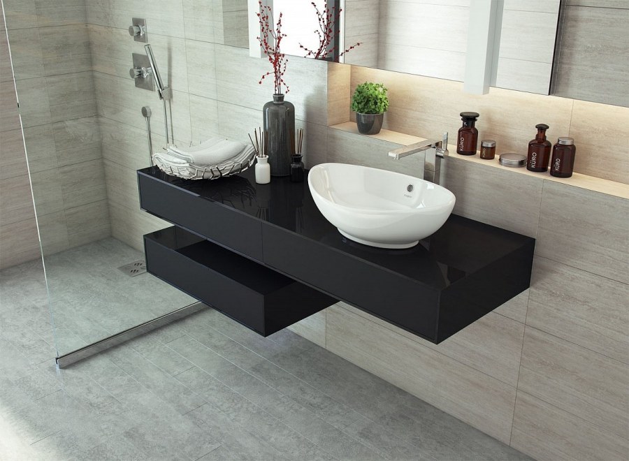Черная тумба под накладную раковину в интерьере (71 фото)