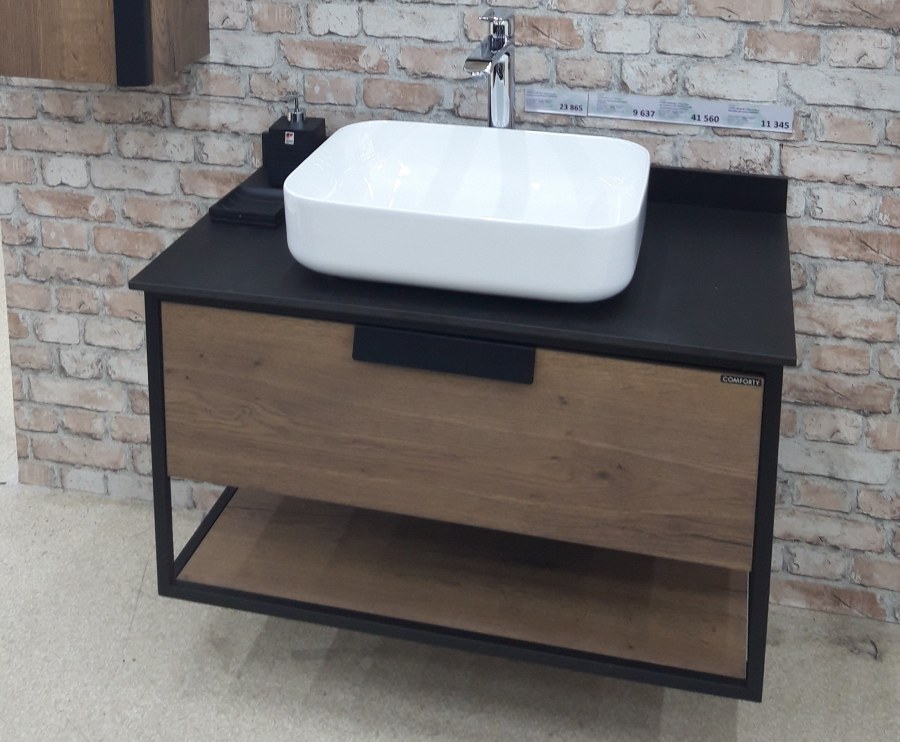 Тумба с раковиной Comforty кёльн 90-1 дуб темный с черной столешницей