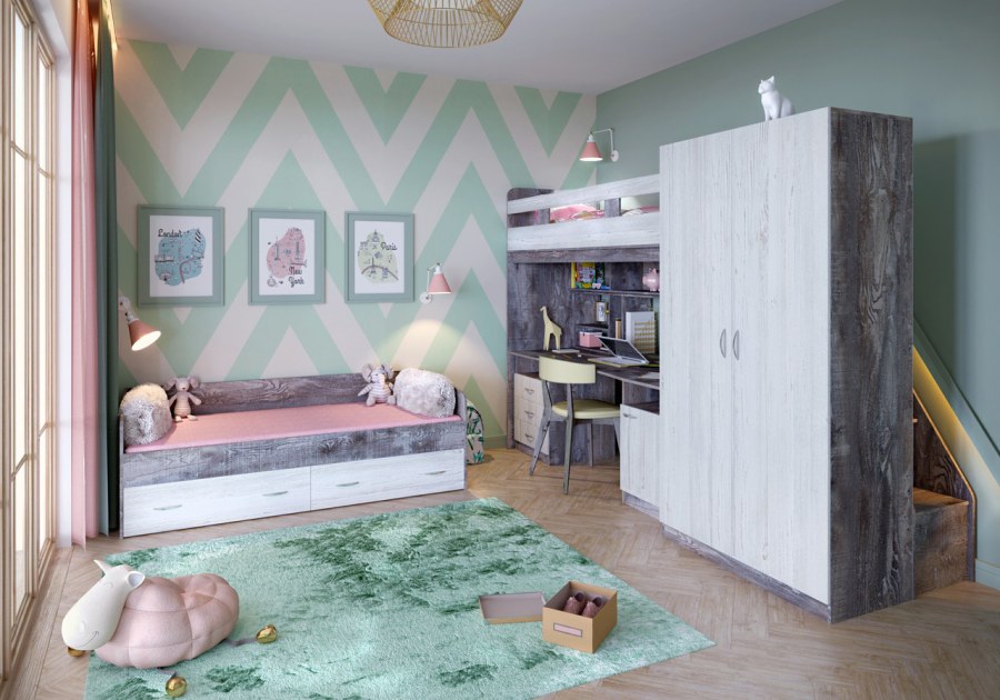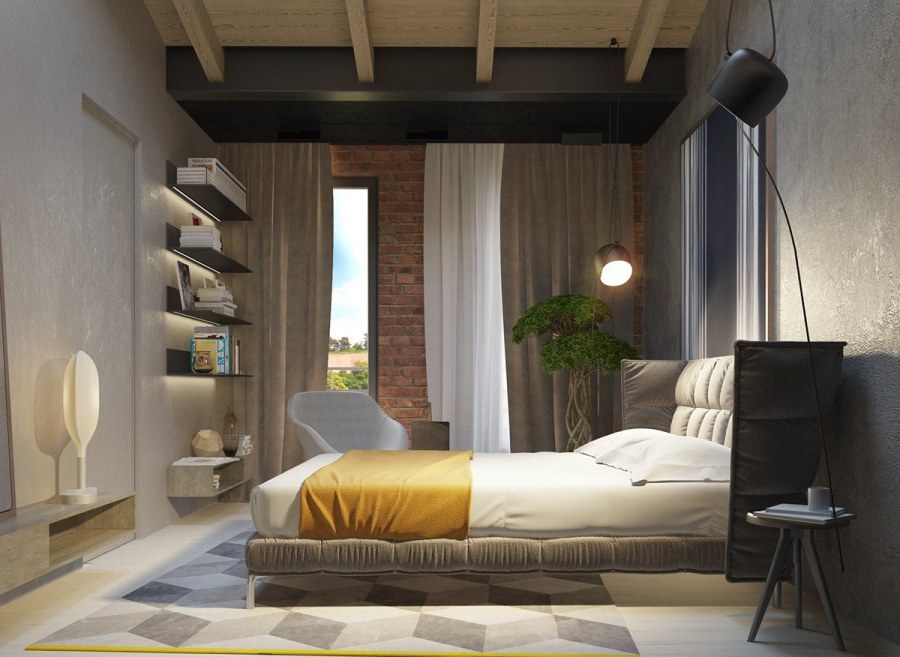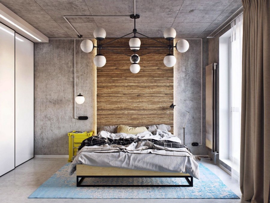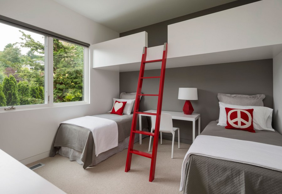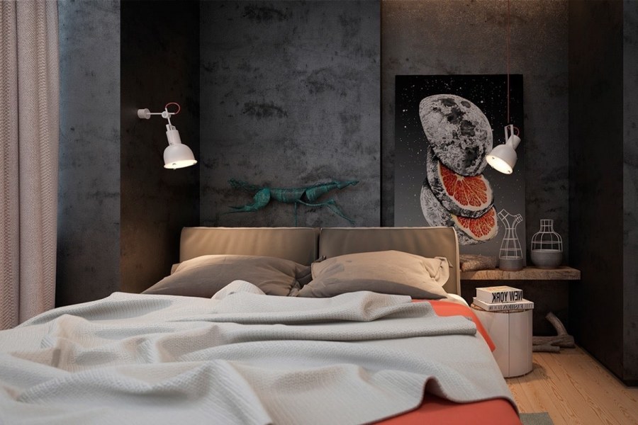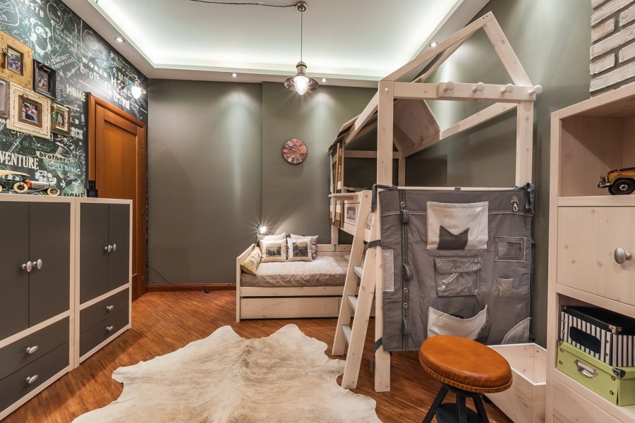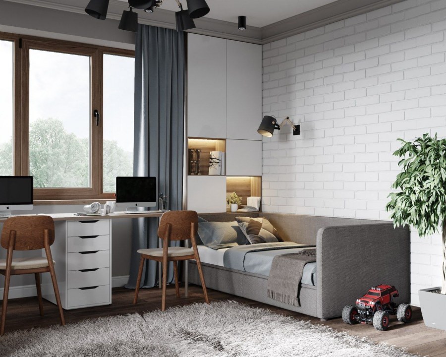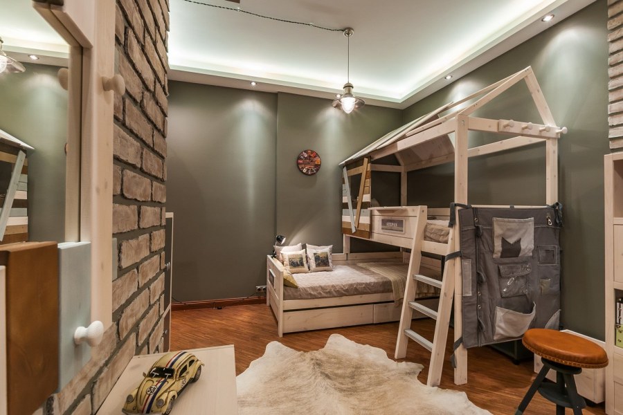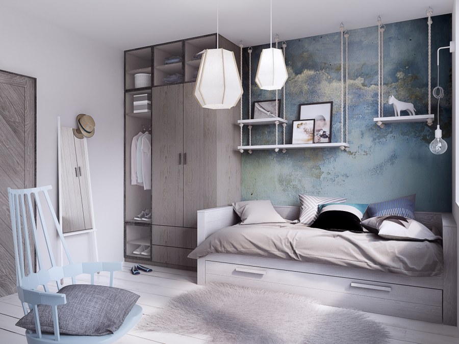 Интерьер детской с кроватями в цвет бетона (71 фото)