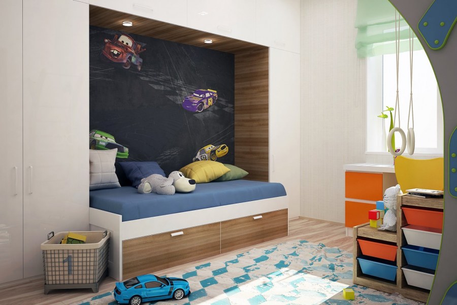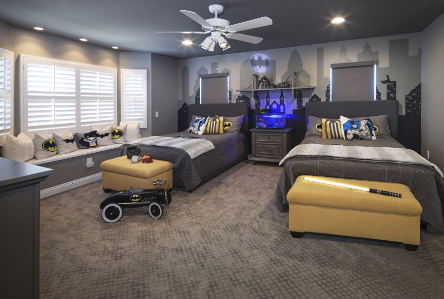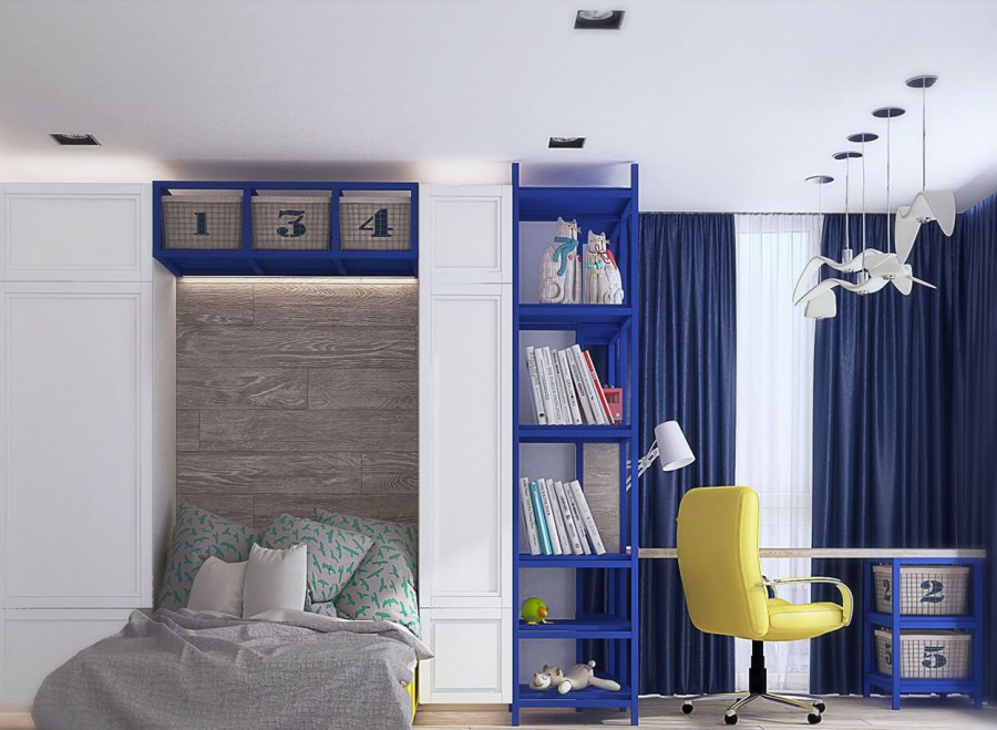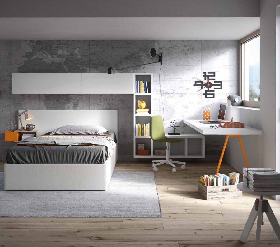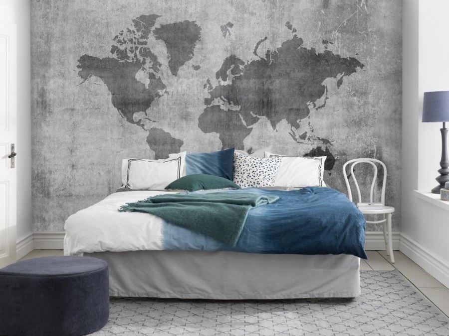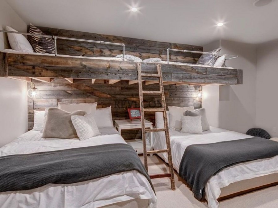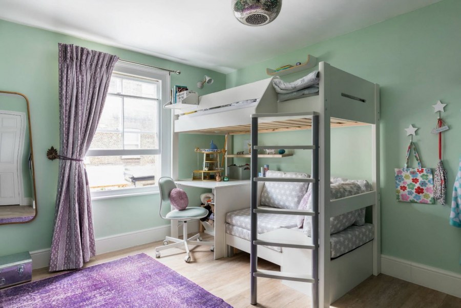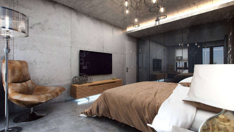Интерьер детской с кроватями в цвет бетона (71 фото)