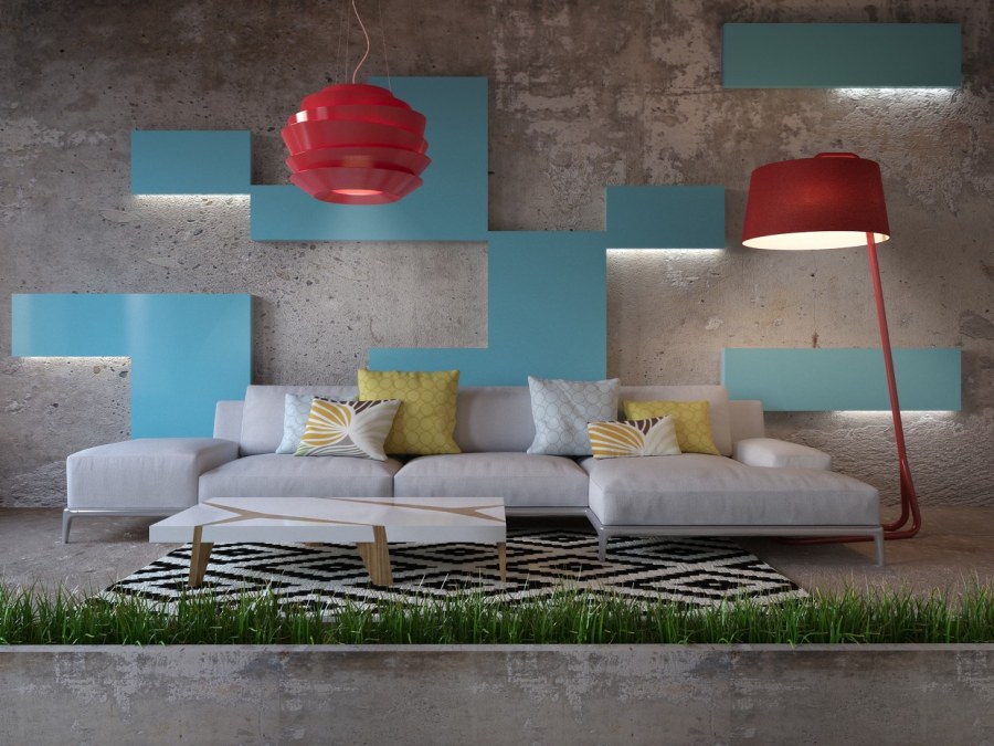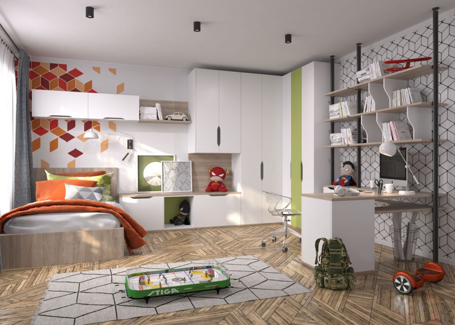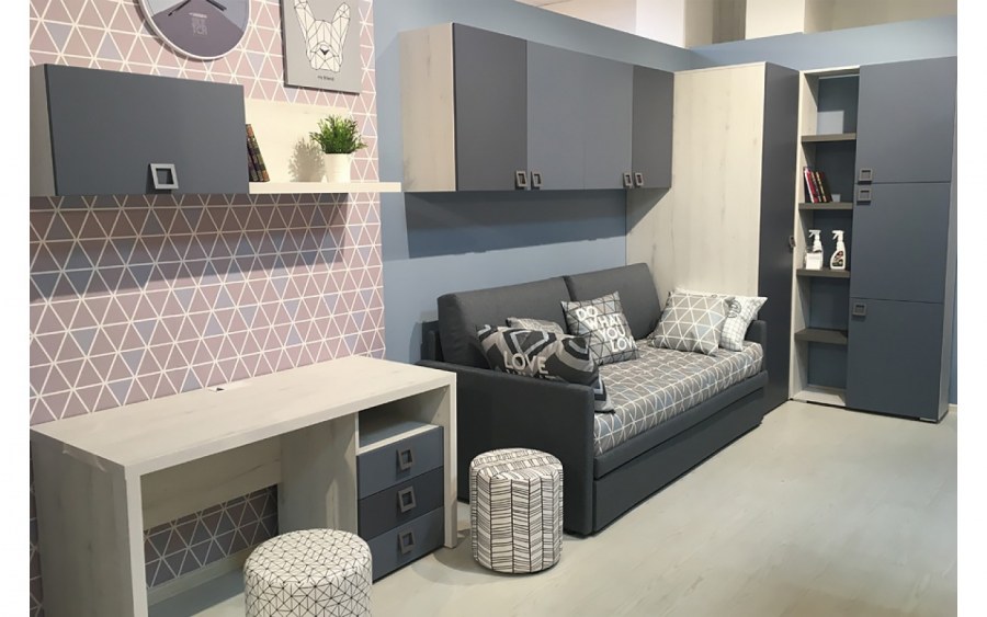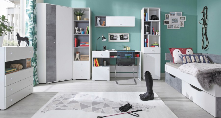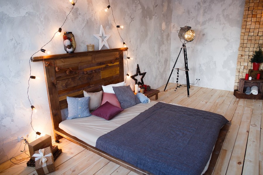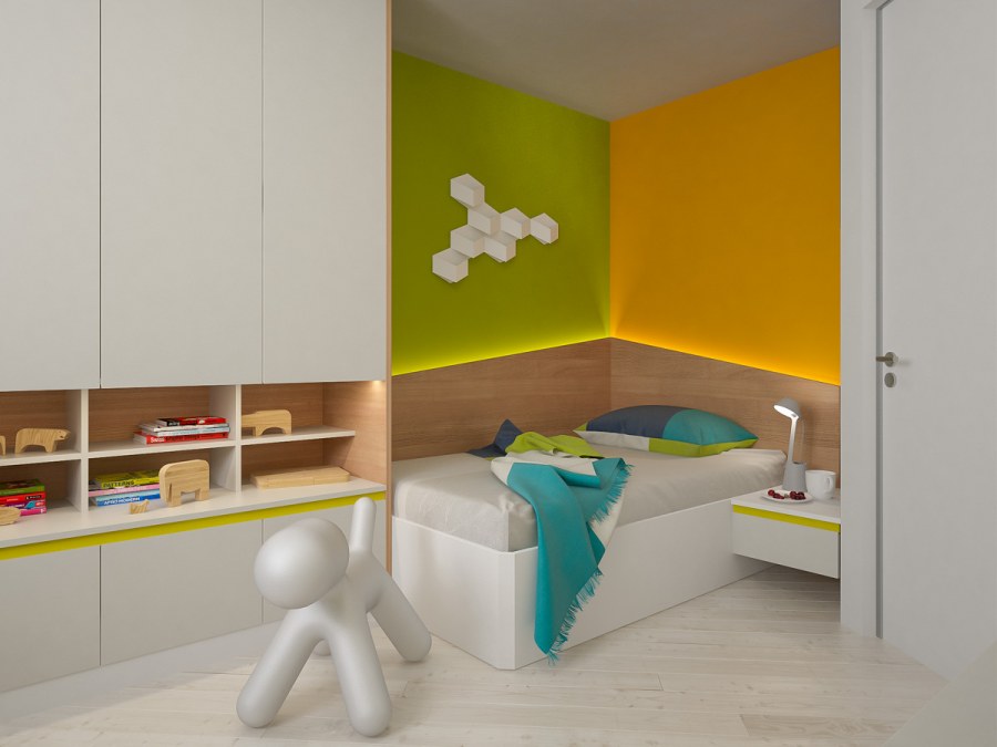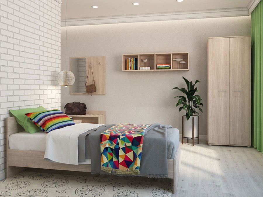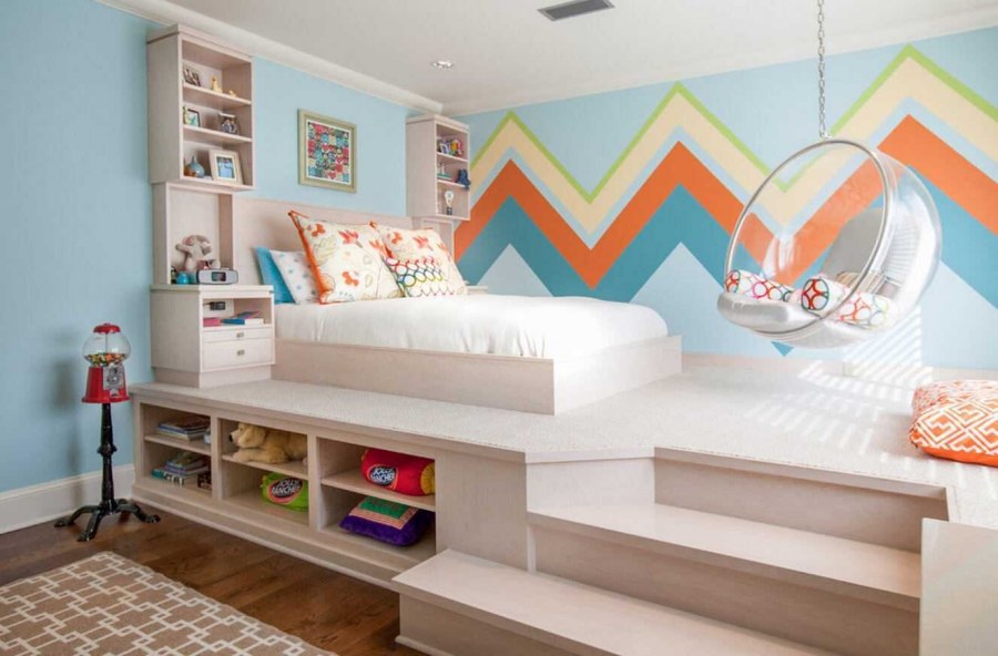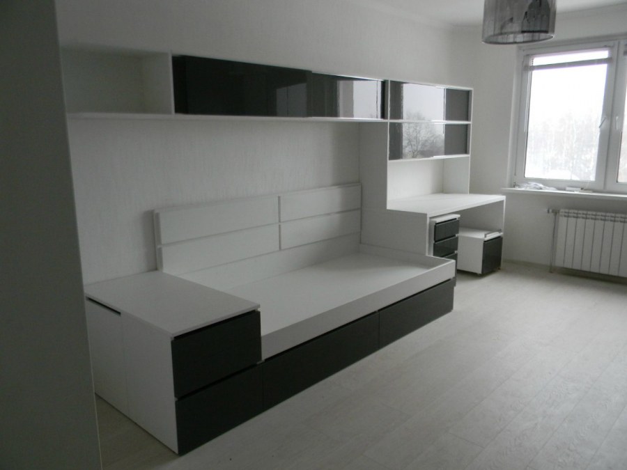 Интерьер детской с кроватями в цвет бетона (71 фото)