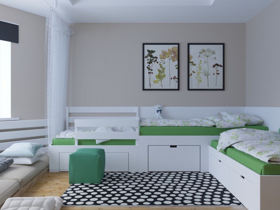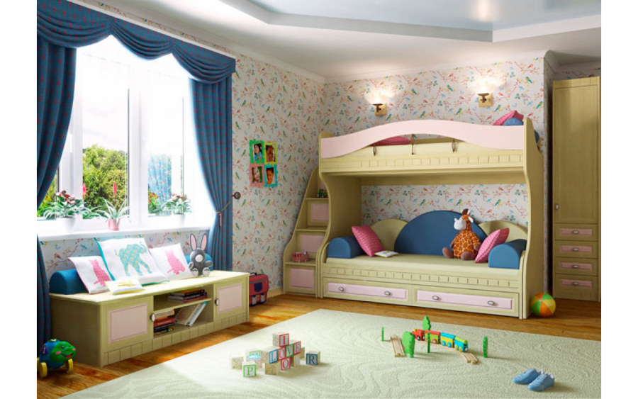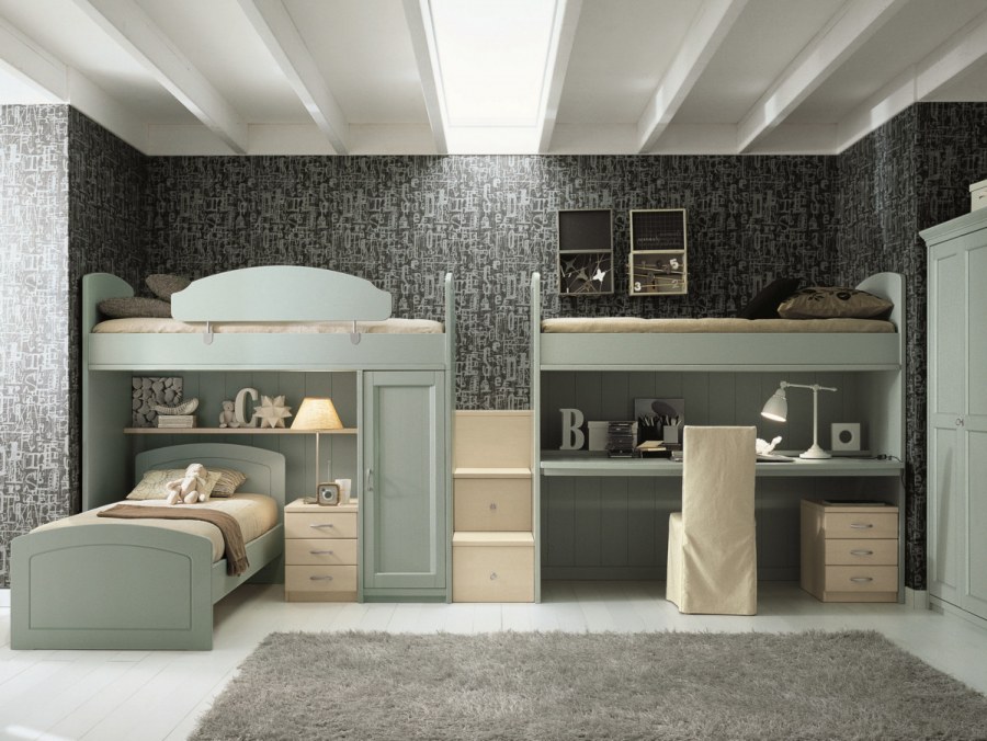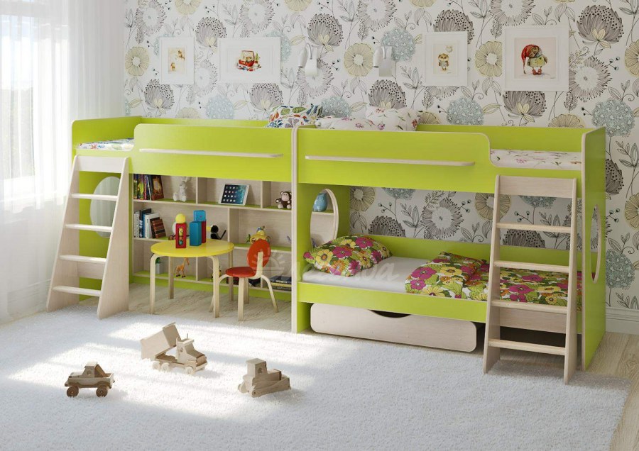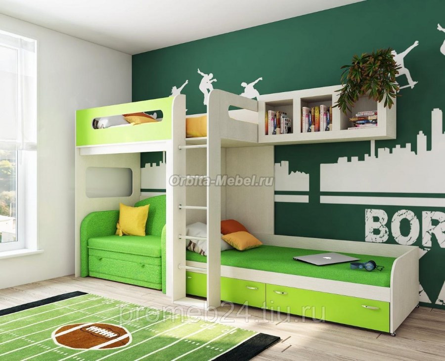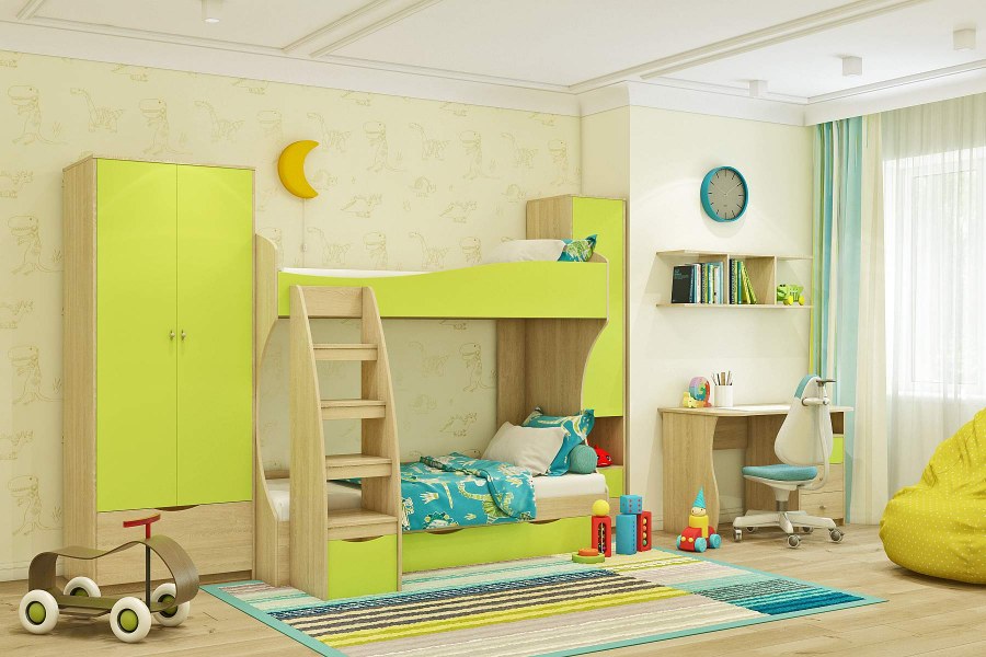 Кровать «Пионер» 2-ярусная (дуб сонома/лайм)