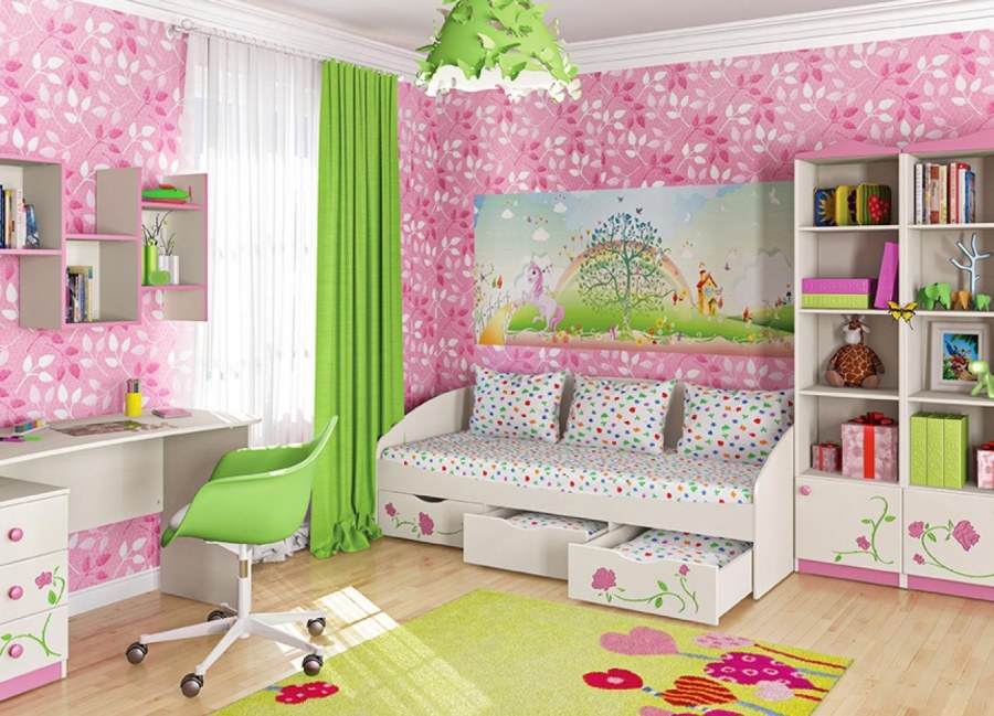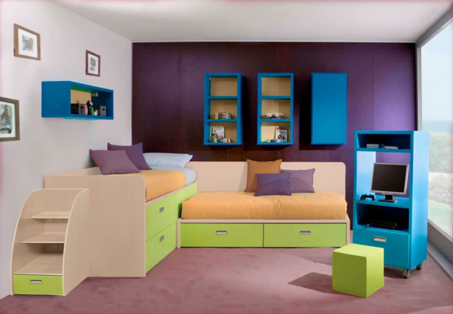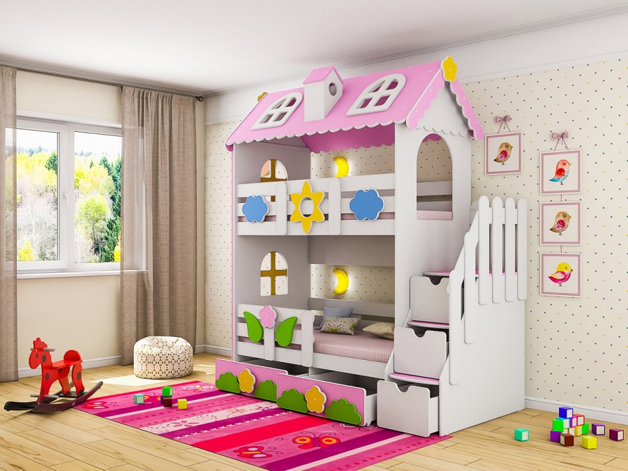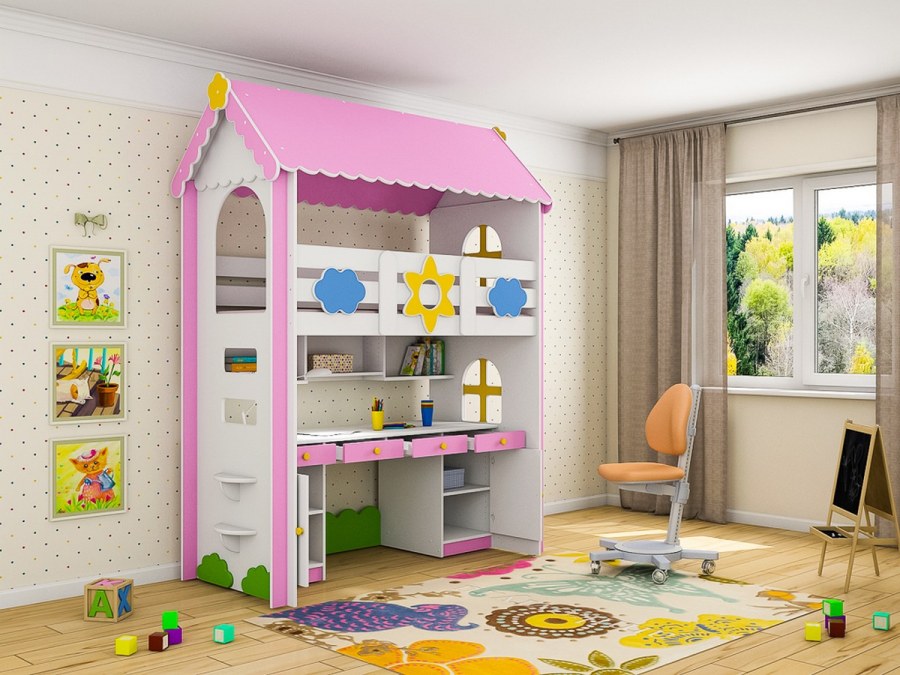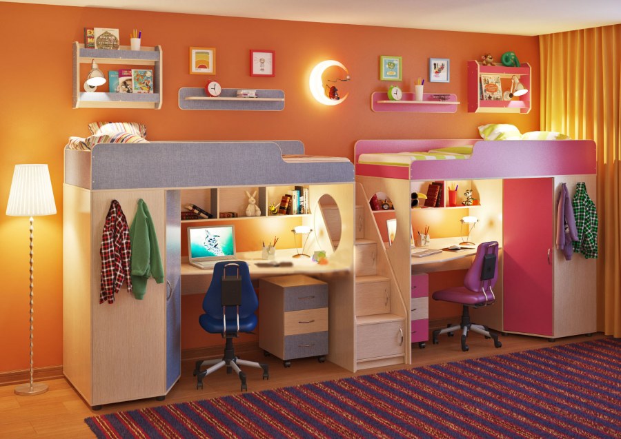 Кровать «Пионер» 2-ярусная (дуб сонома/лайм)