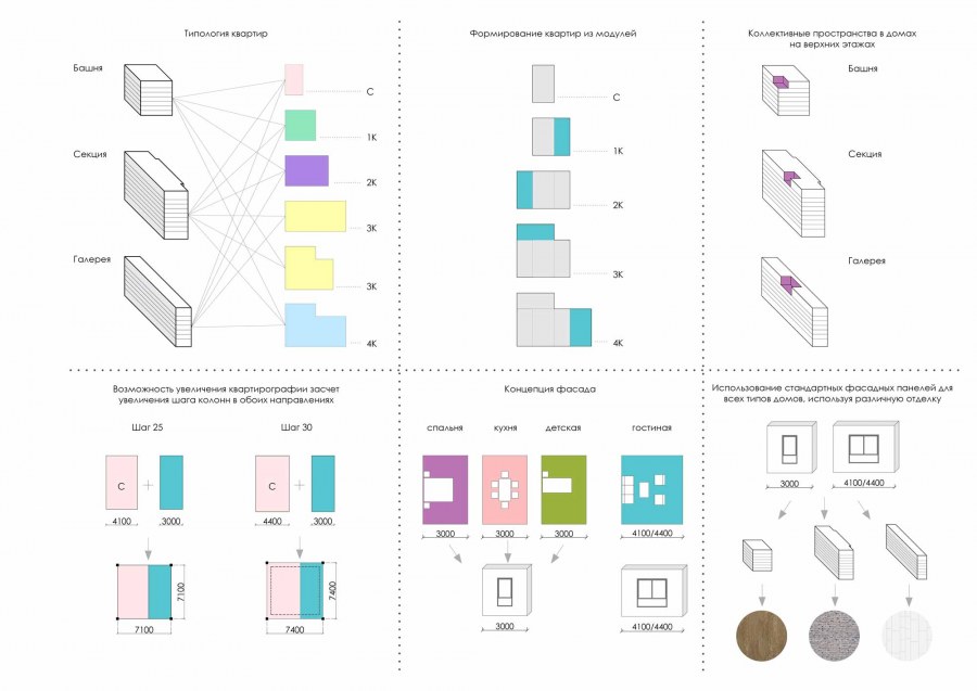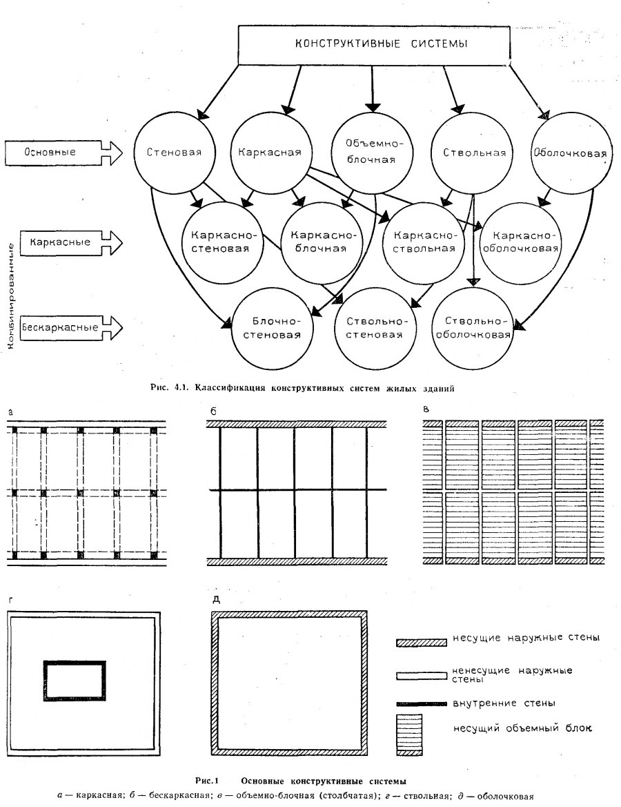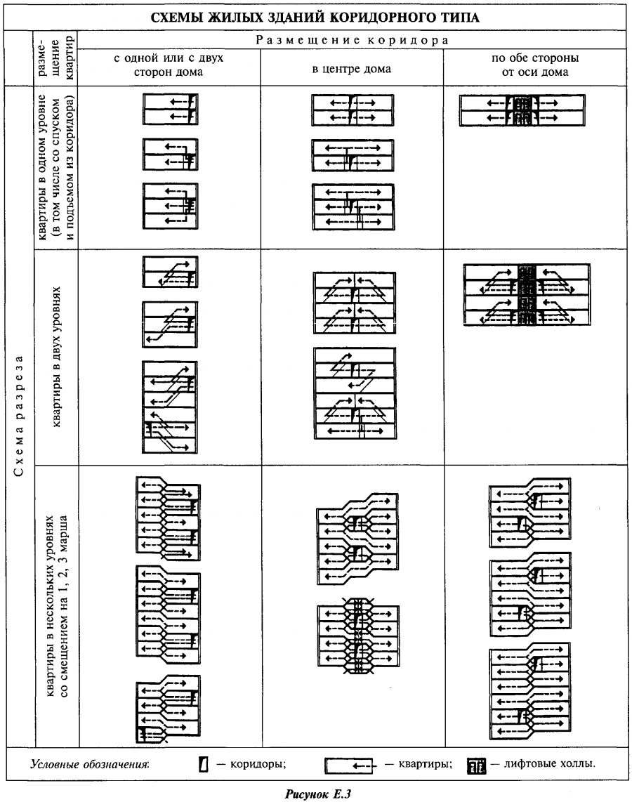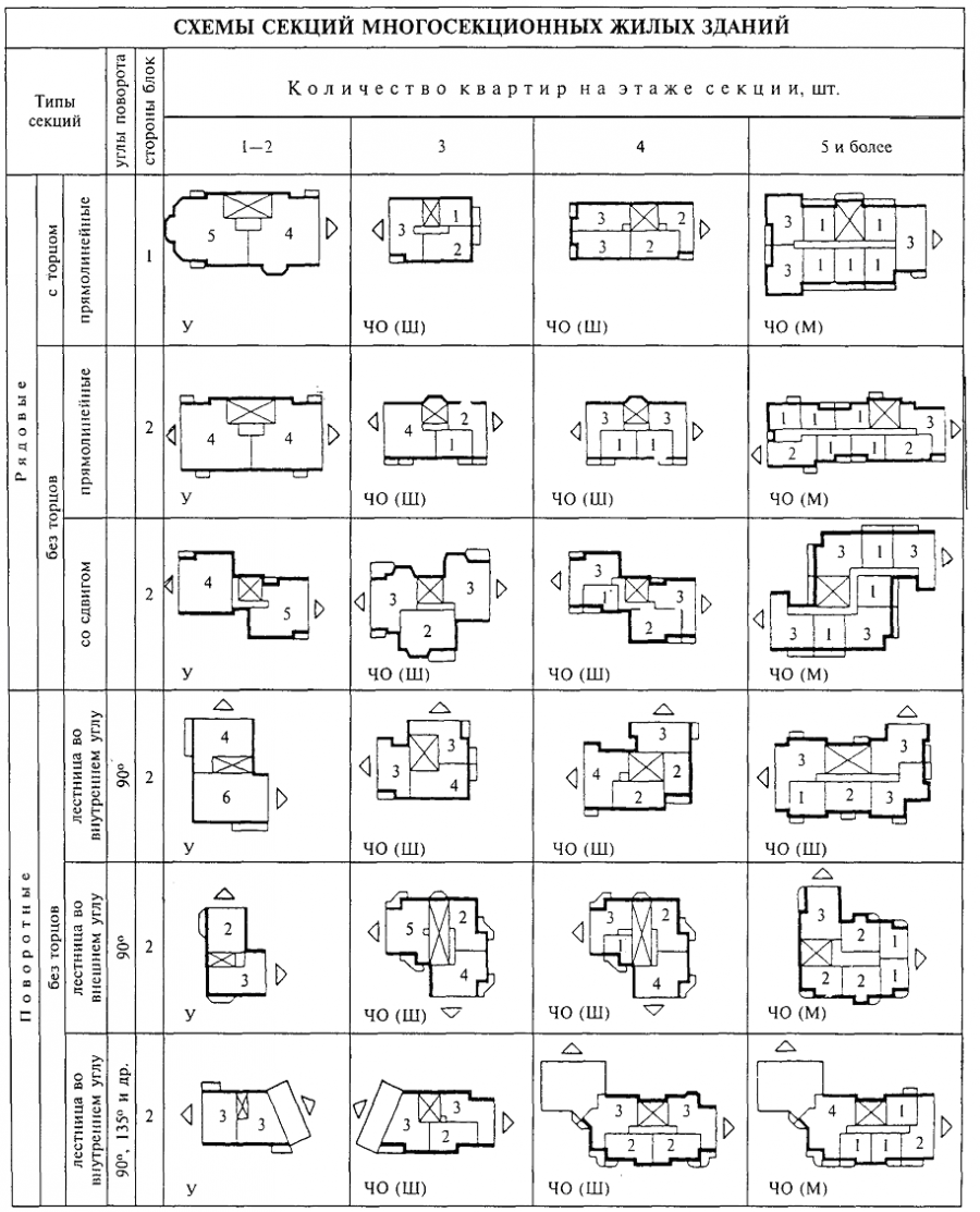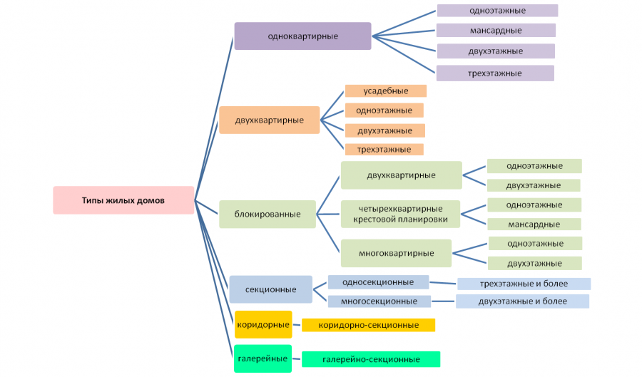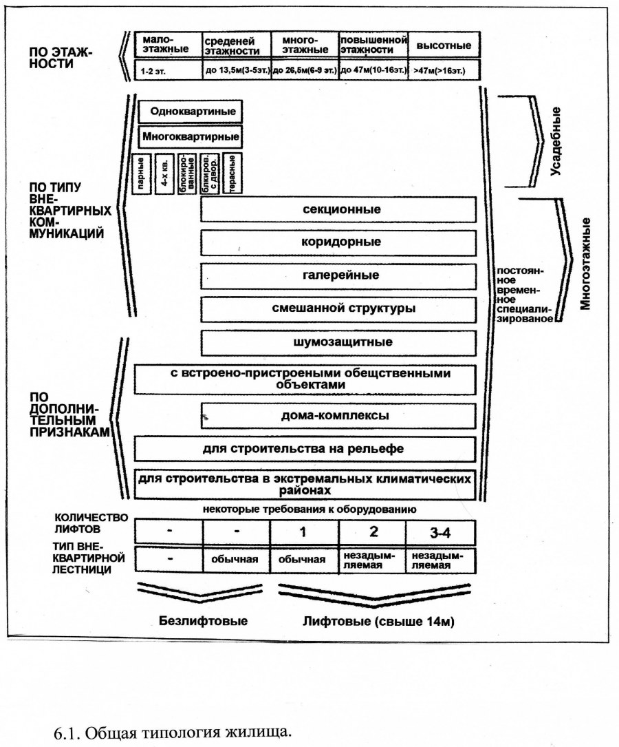 Типологическая схема жилых домов по объемно-планировочной структуре