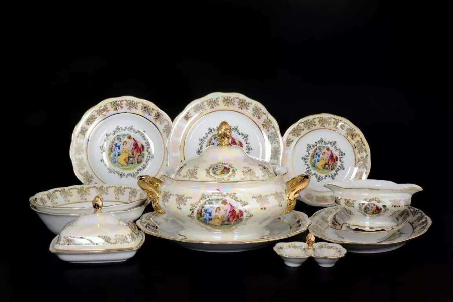 Сервиз столовый рококо Золотая отводка 6/24 фарфор