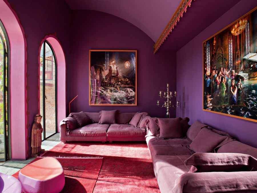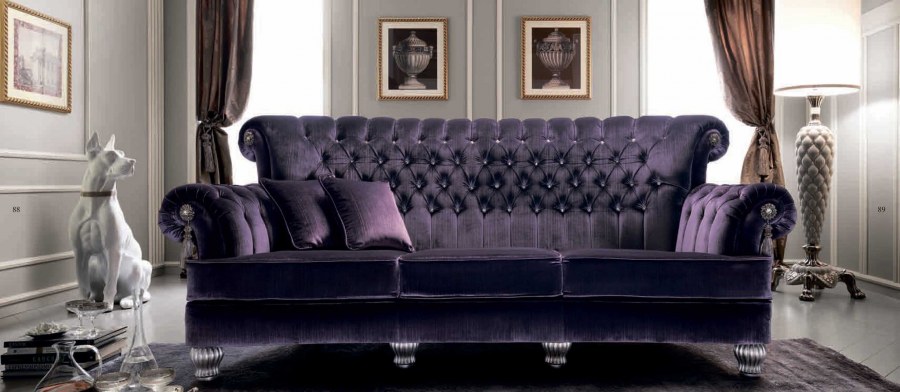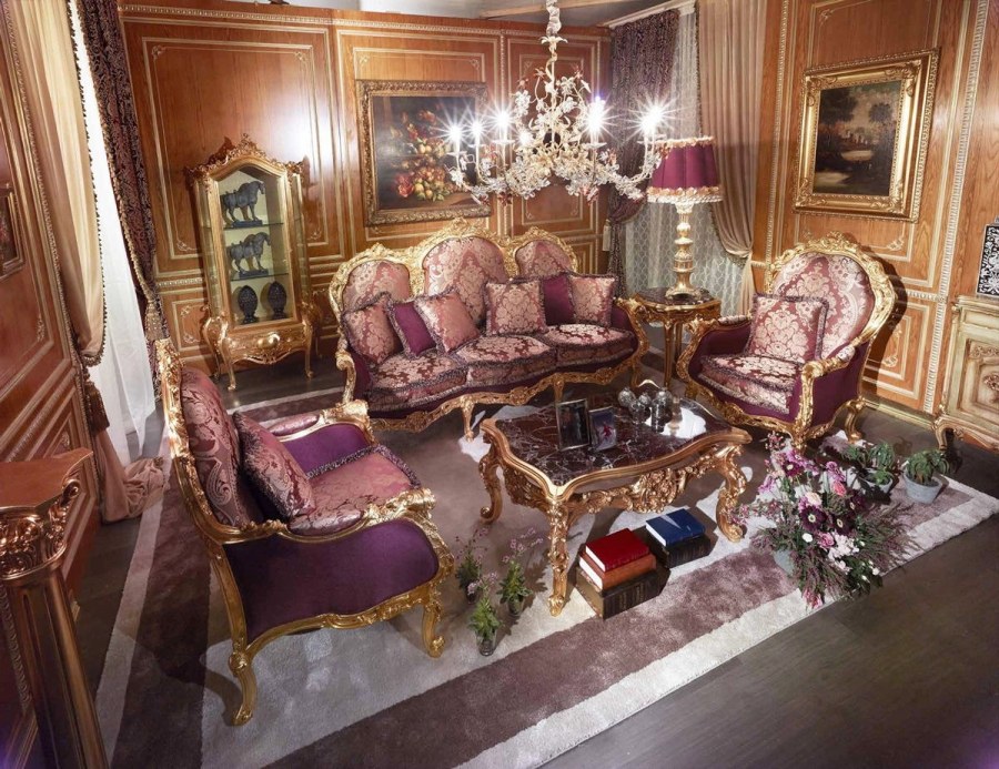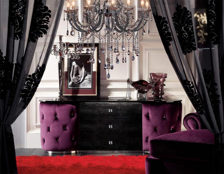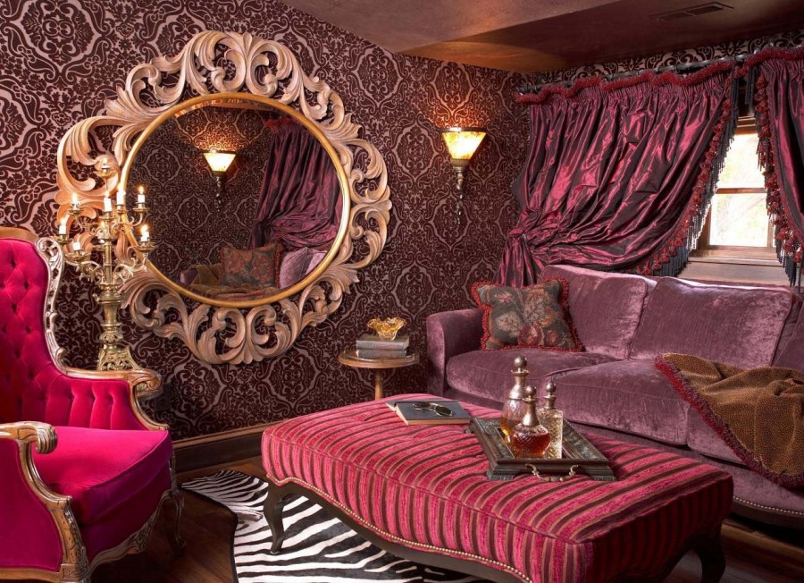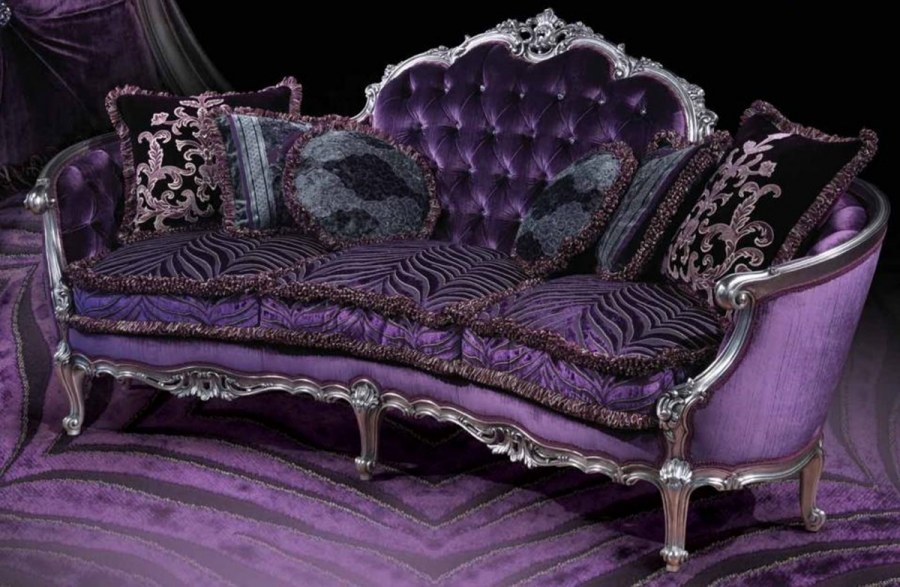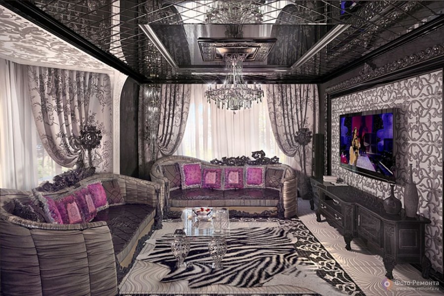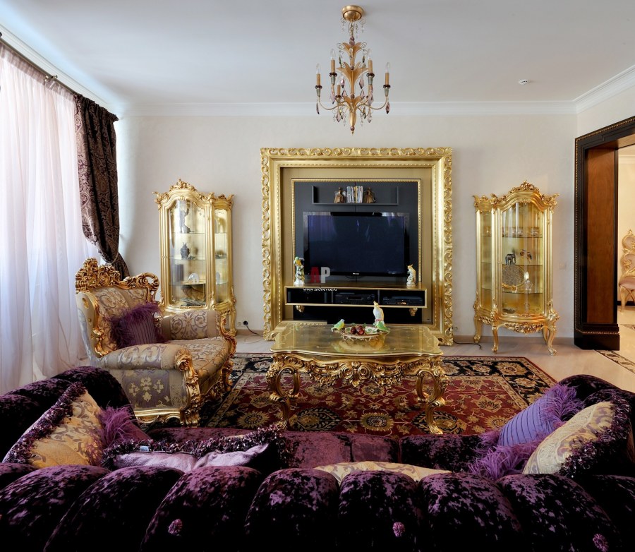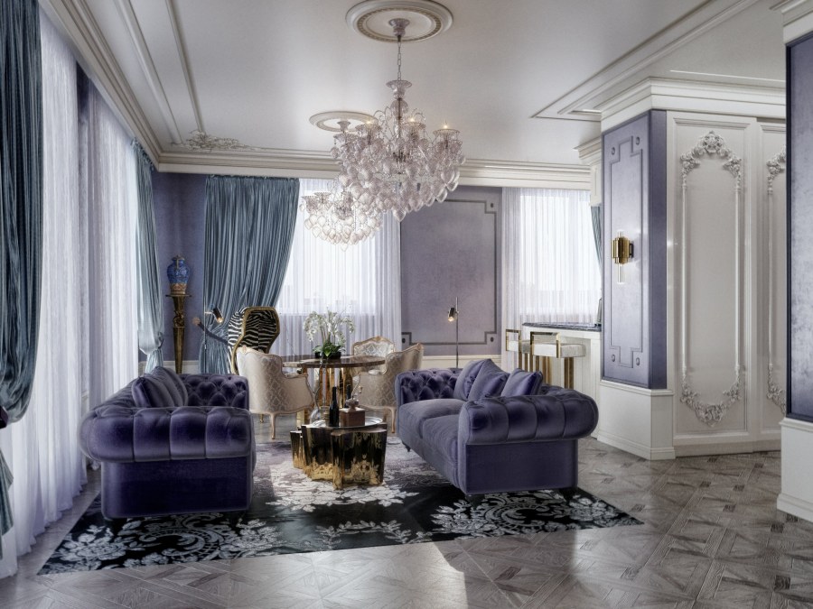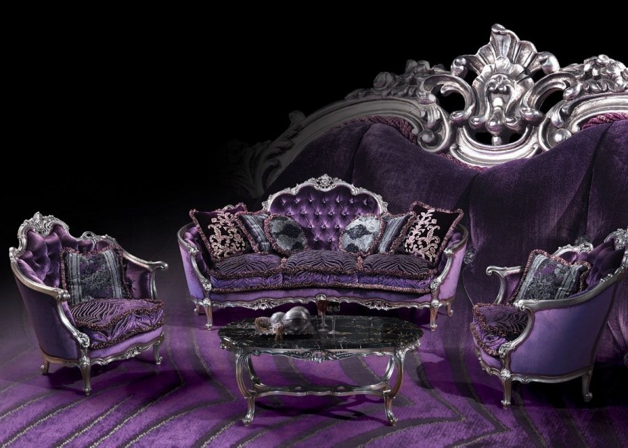 Интерьер спальни в сиренево белом цвете в стиле Барокко