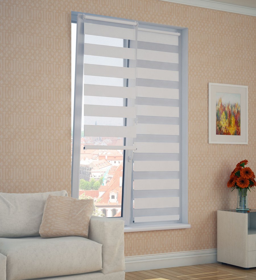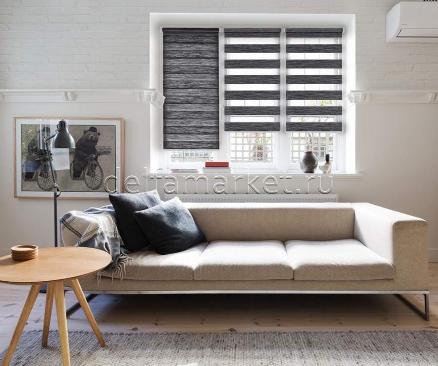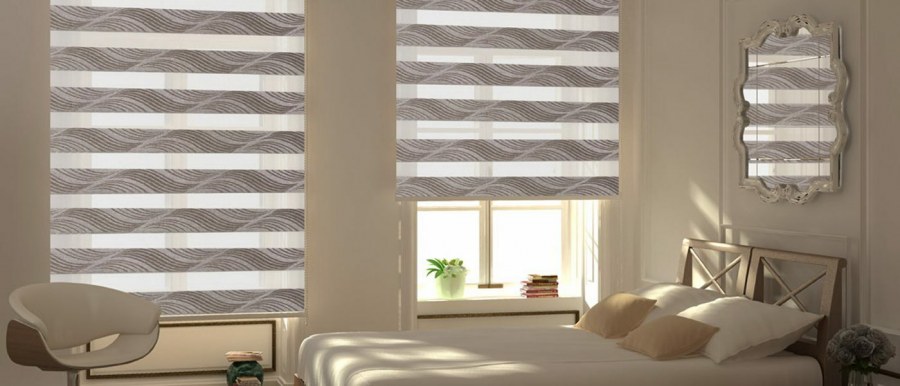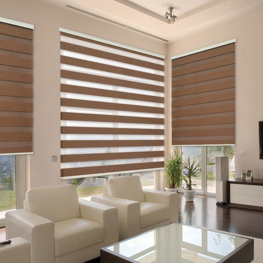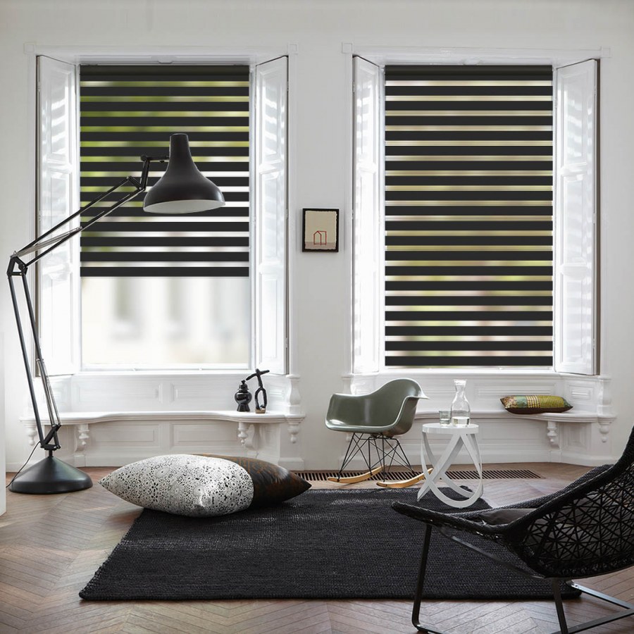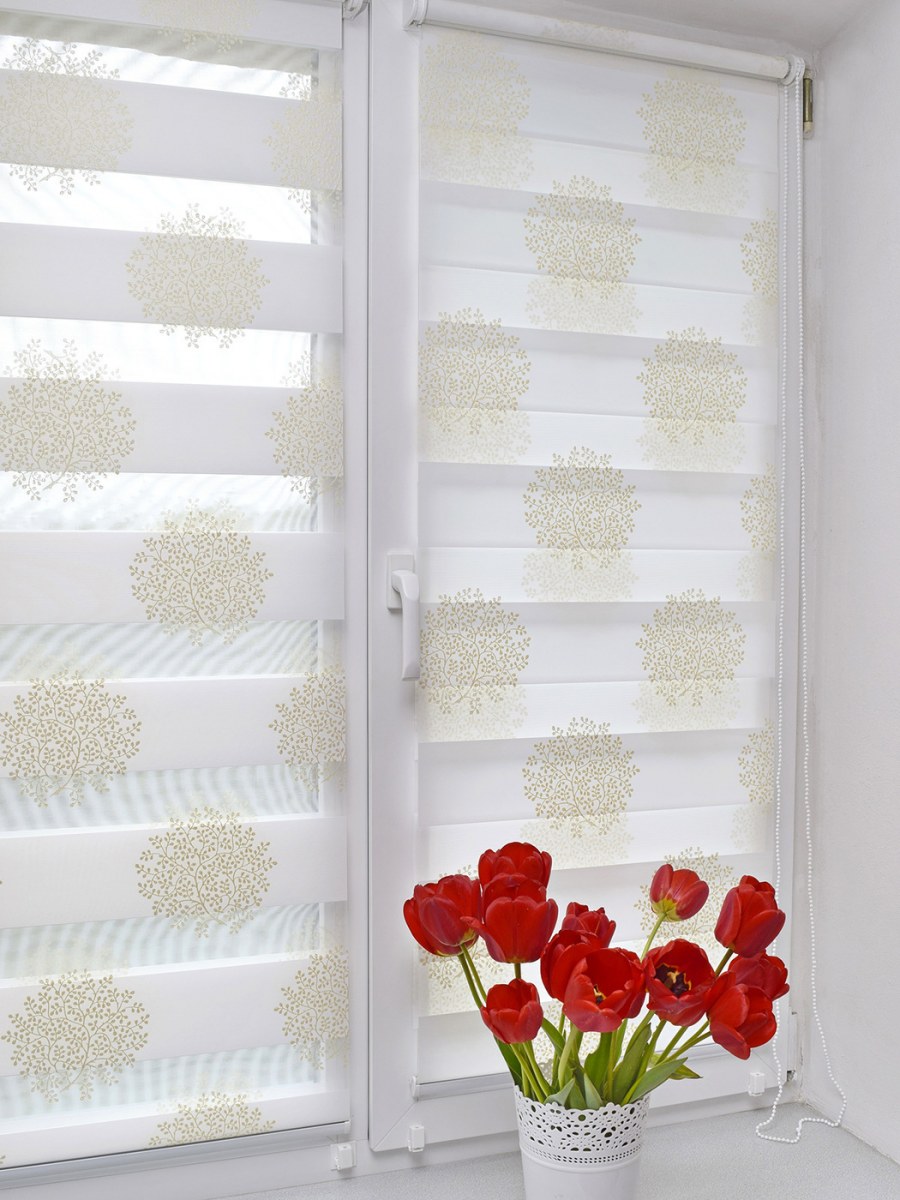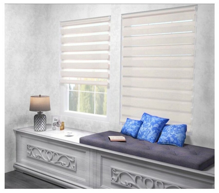 Рулонные шторы день ночь в интерьере комнаты (71 фото)