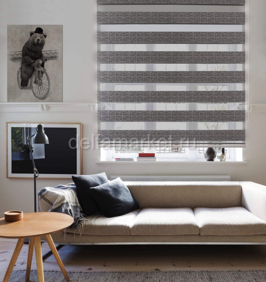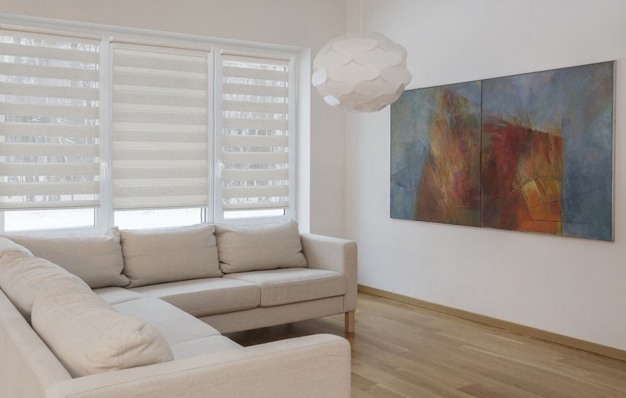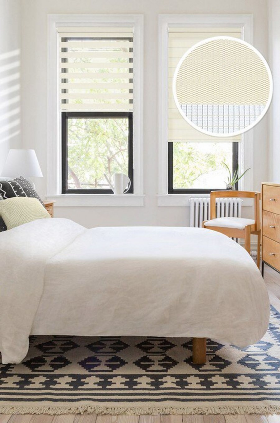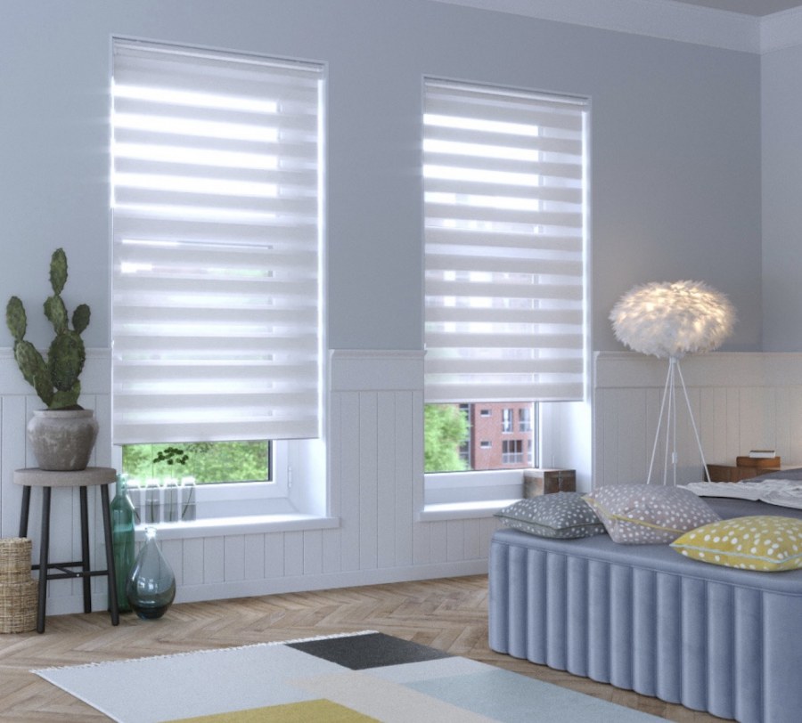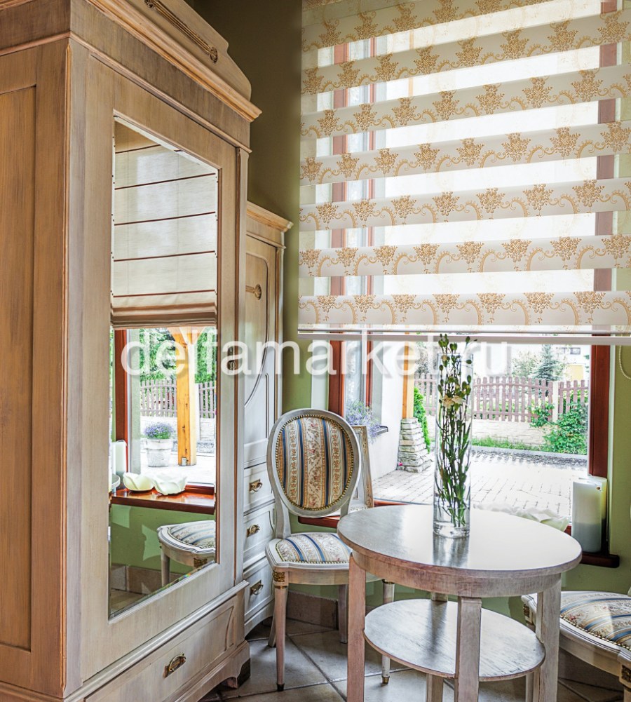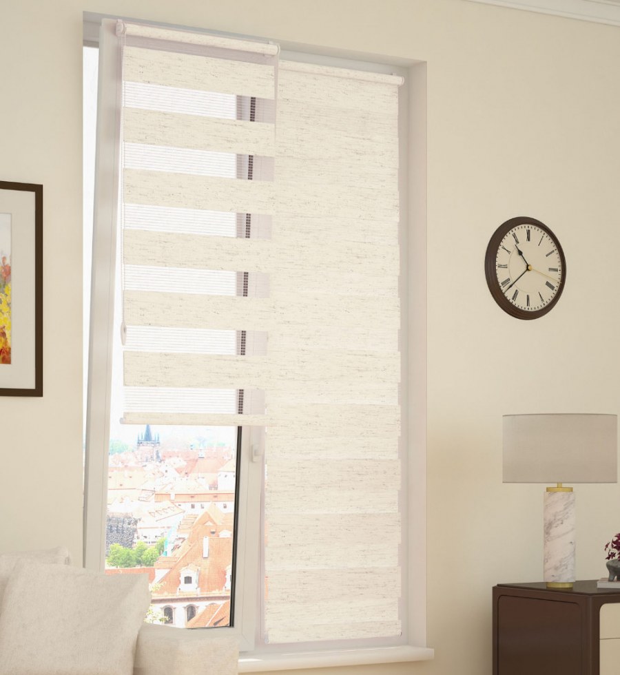 Рулонные шторы день ночь в интерьере комнаты (71 фото)