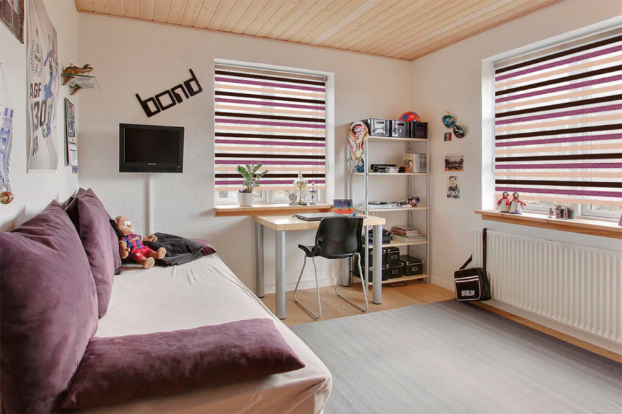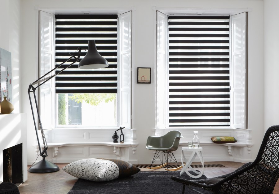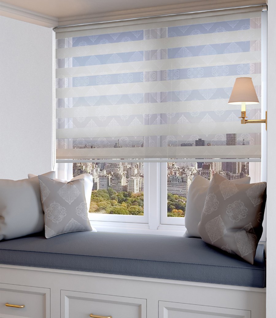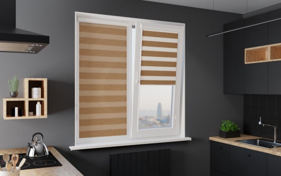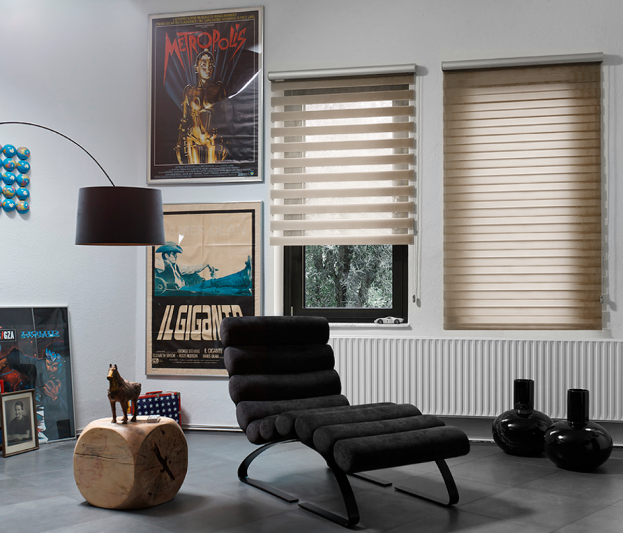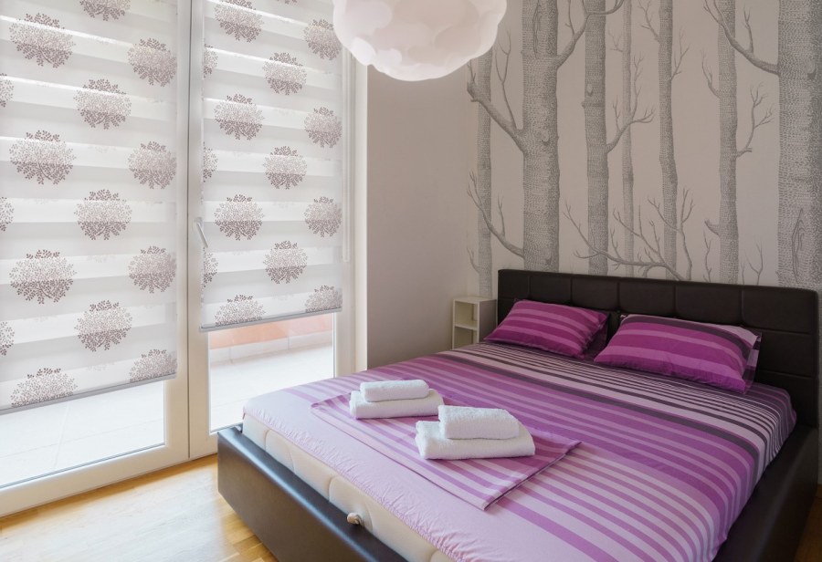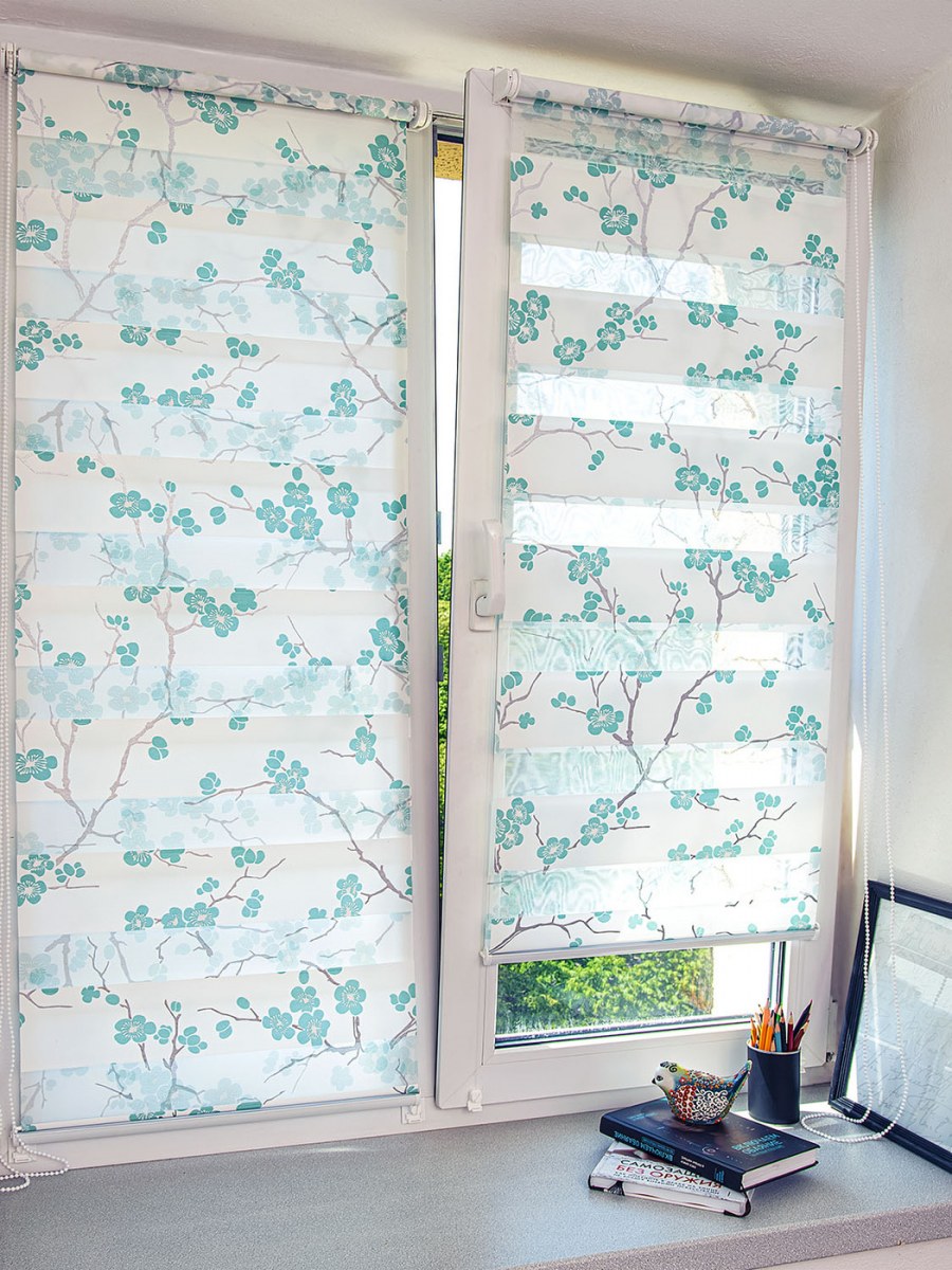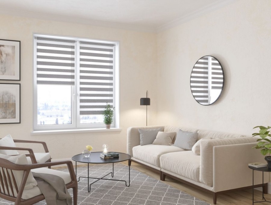 Рулонные шторы день ночь в интерьере комнаты (71 фото)