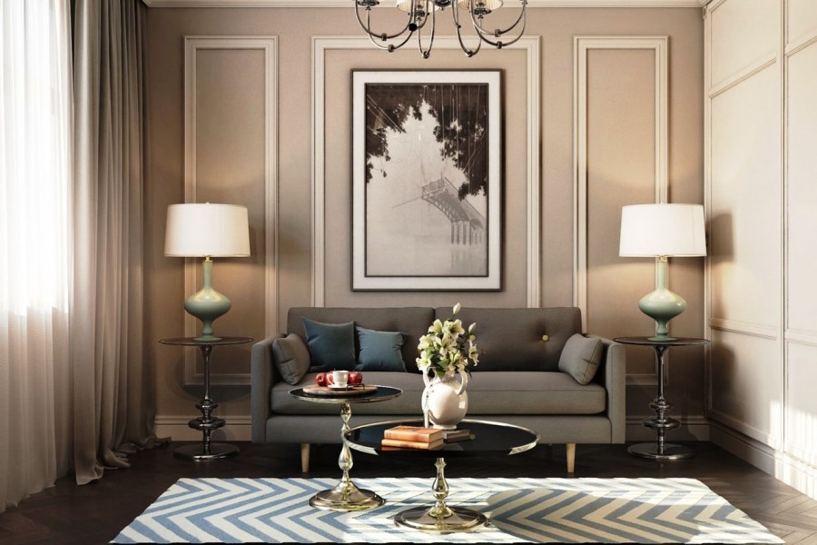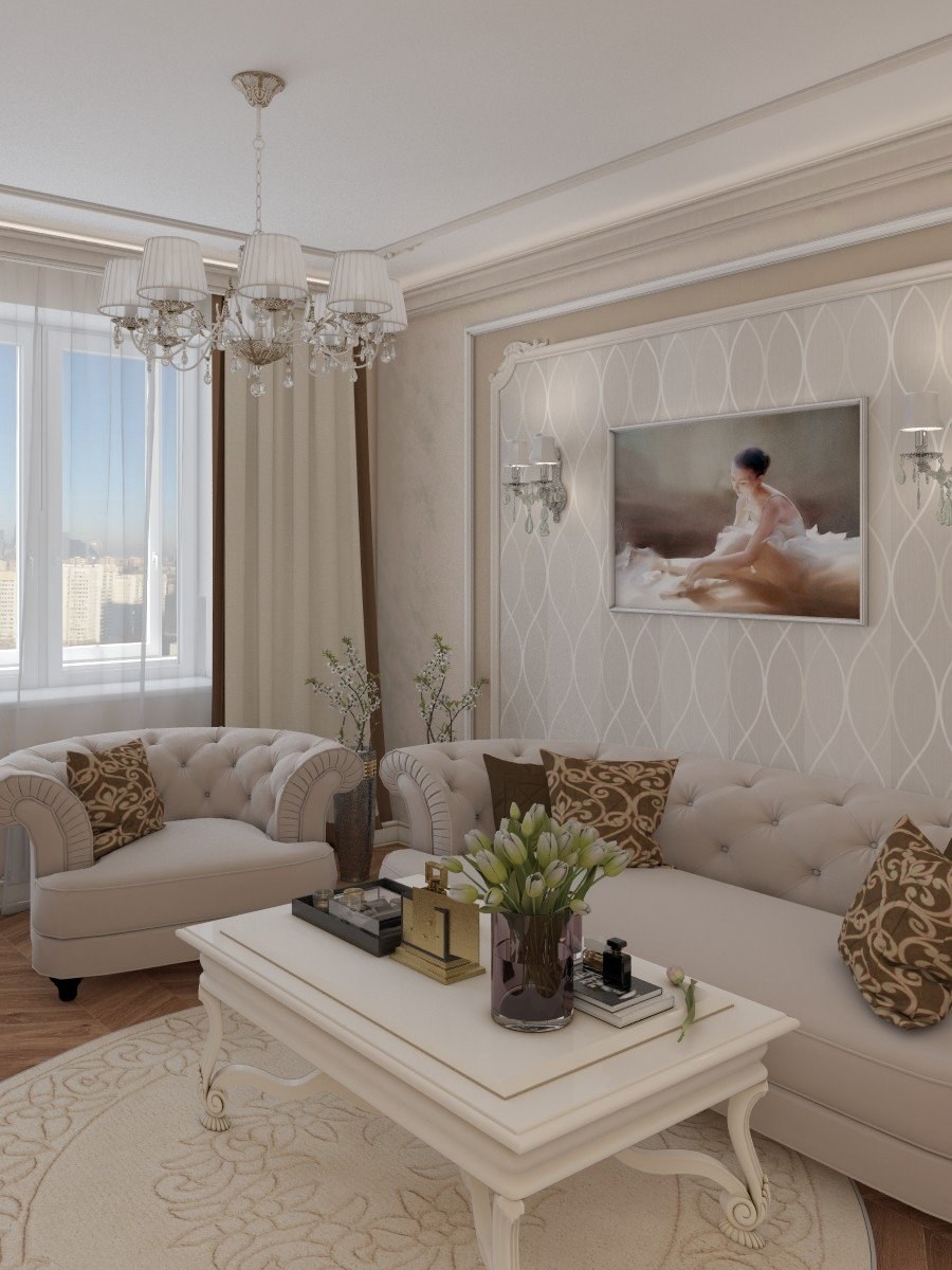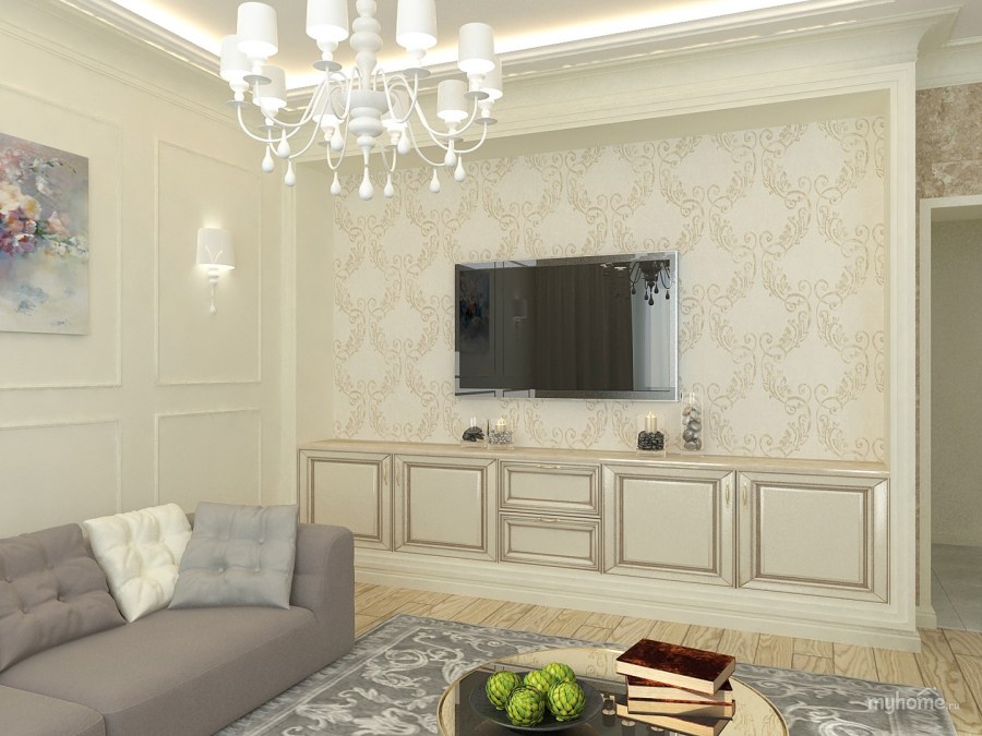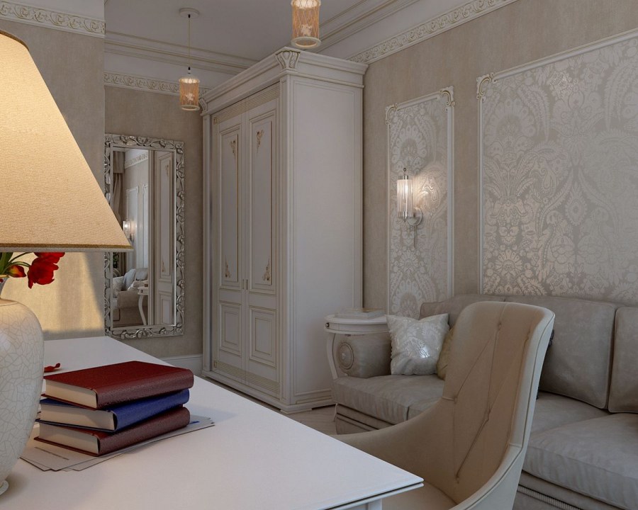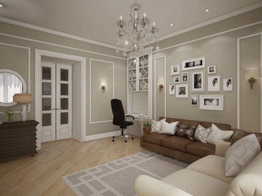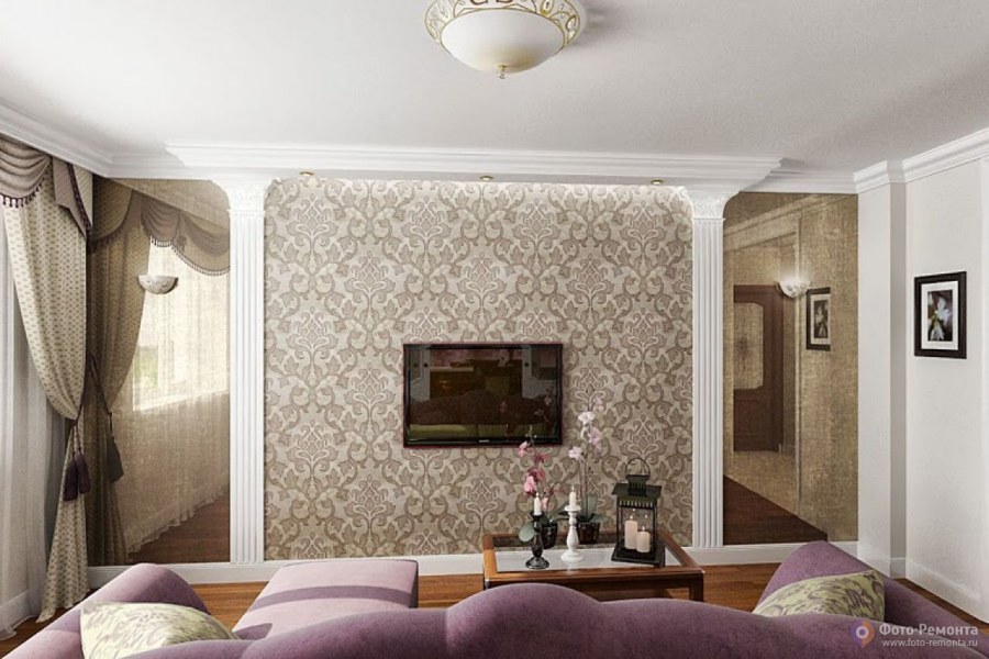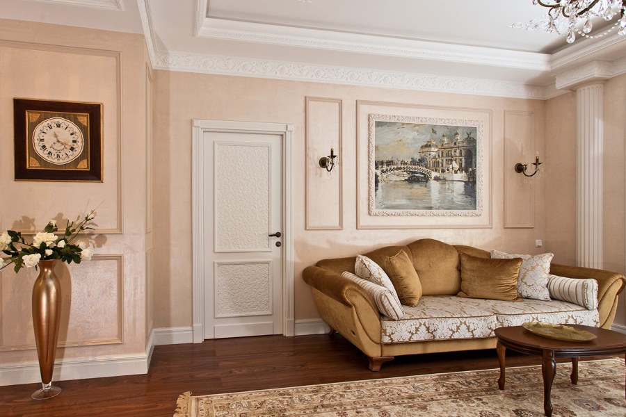 Линкруста в интерьере гостиной в стиле Неоклассика