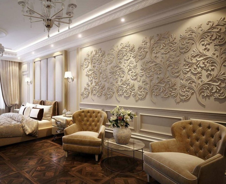 Молдинги в интерьере для разделения обоев в гостиной идеи (74 фото)