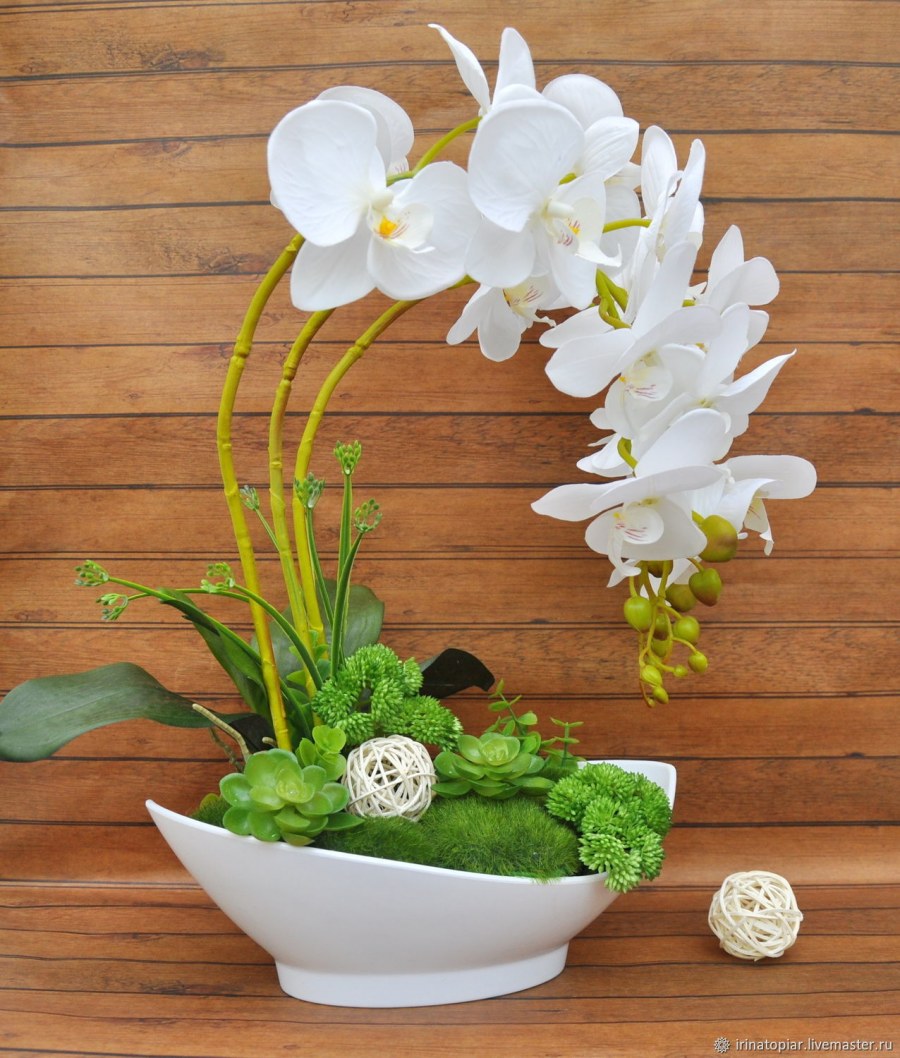 Композиция с орхидеями в горшке