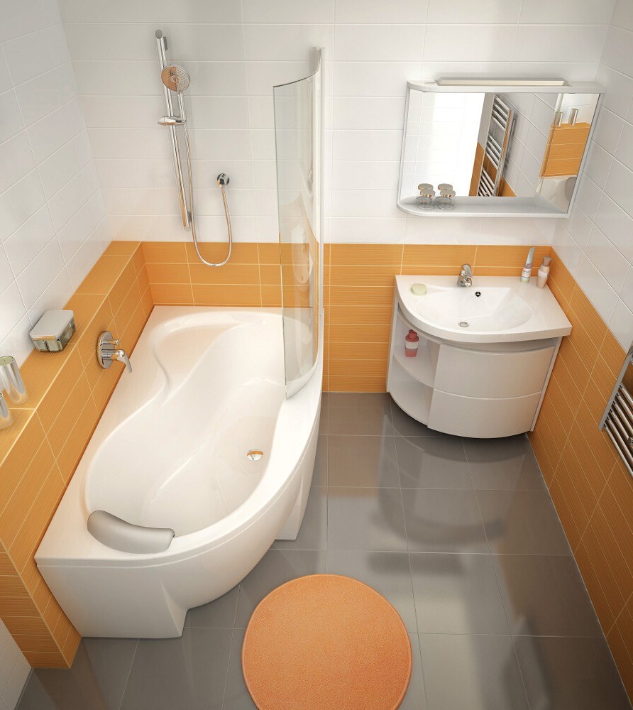 Дизайн ванной с угловой ванной и унитазом (72 фото)