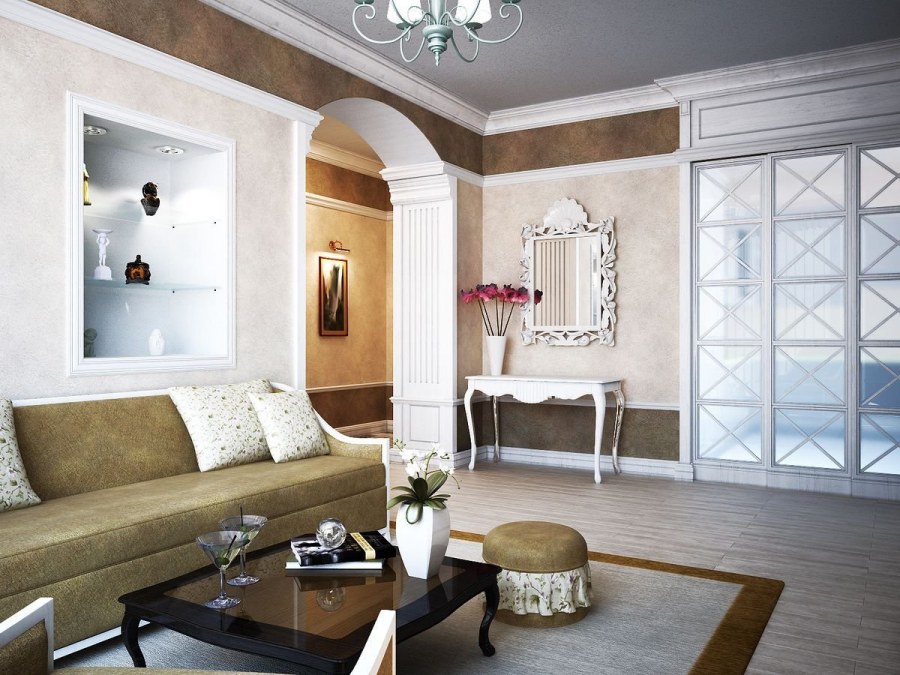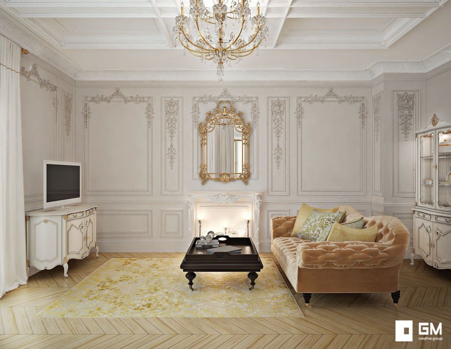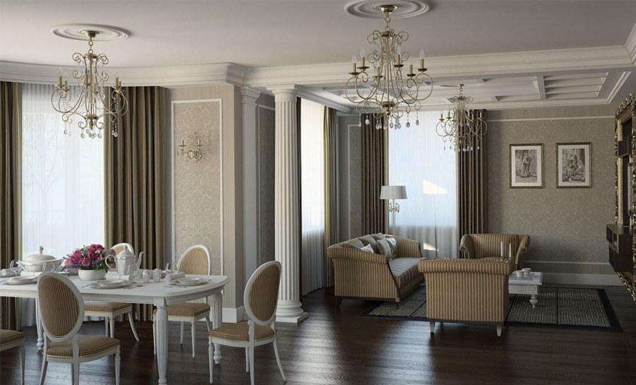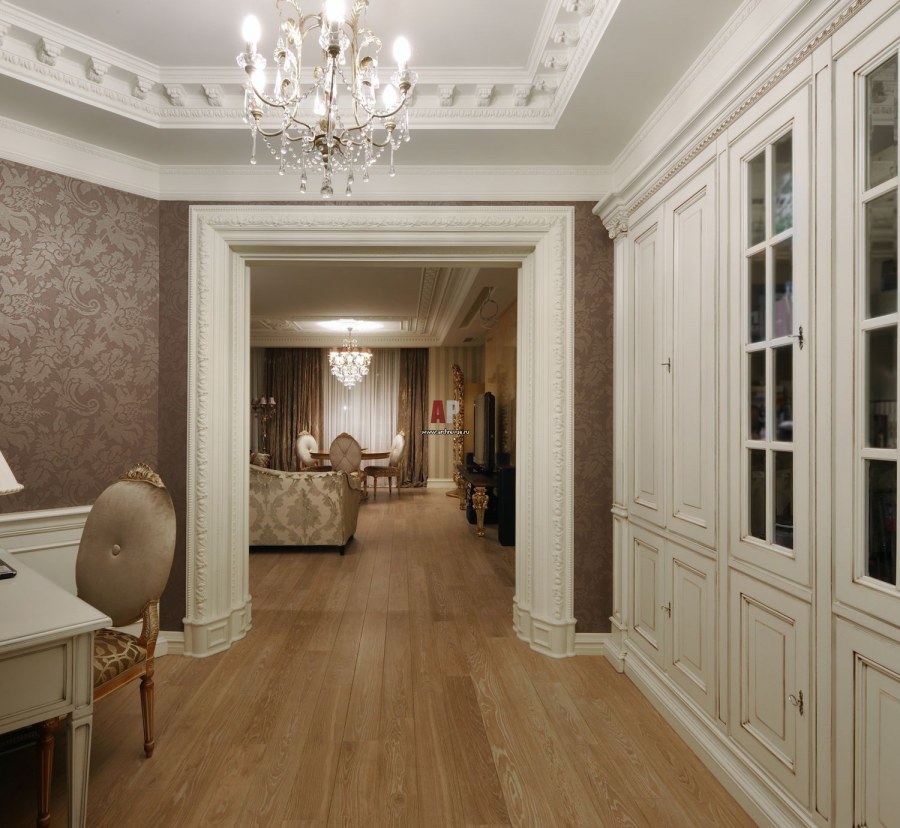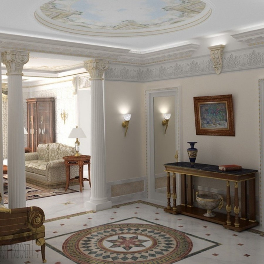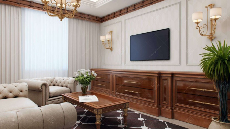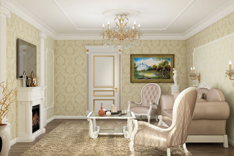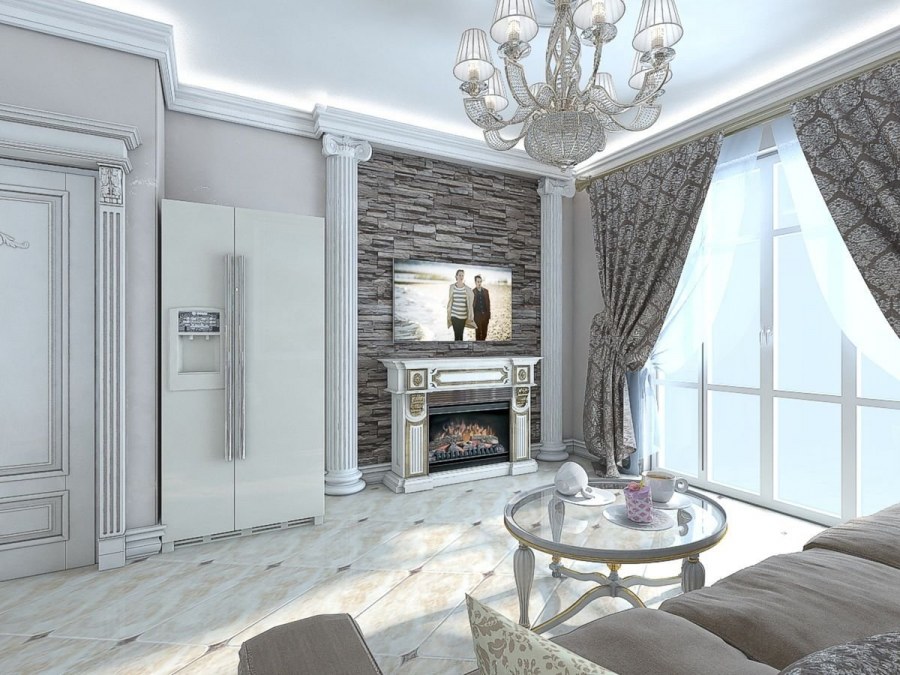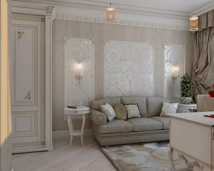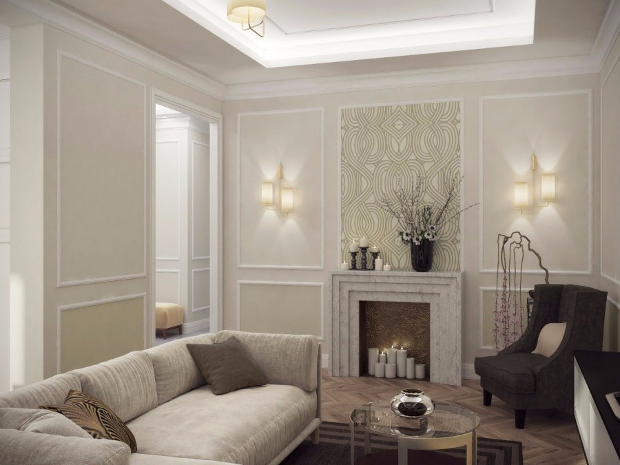 Линкруста в интерьере гостиной в стиле Неоклассика