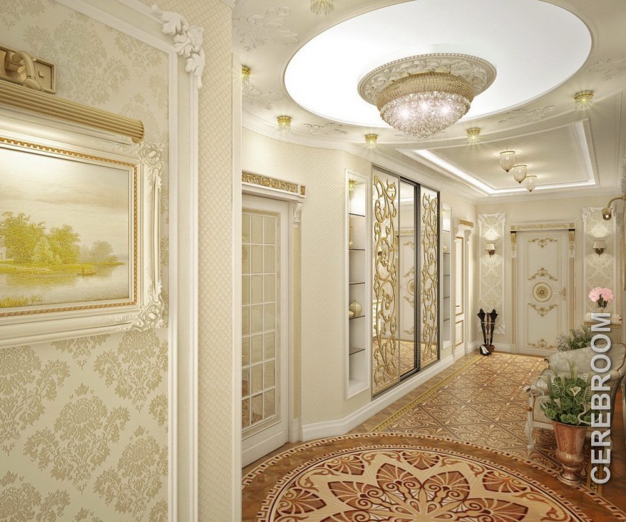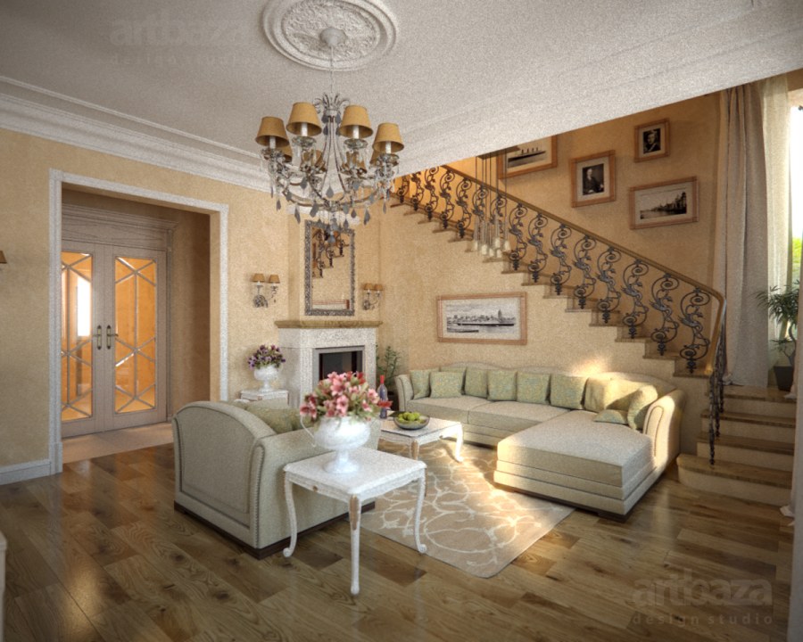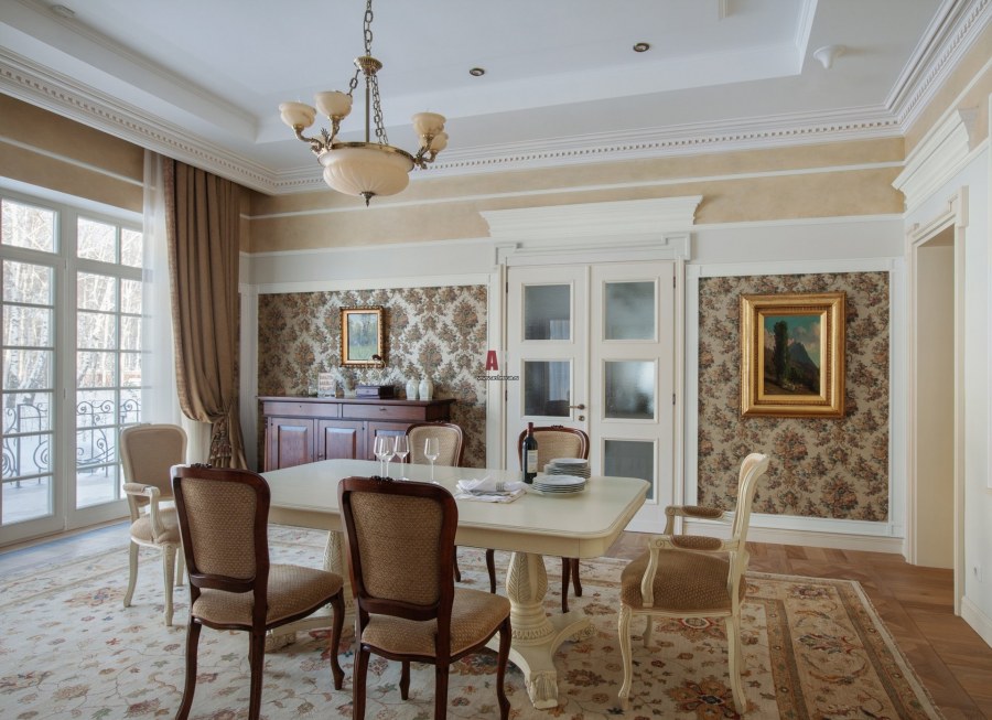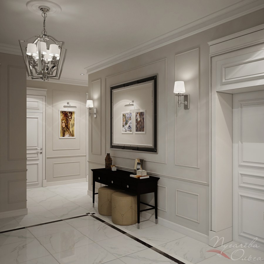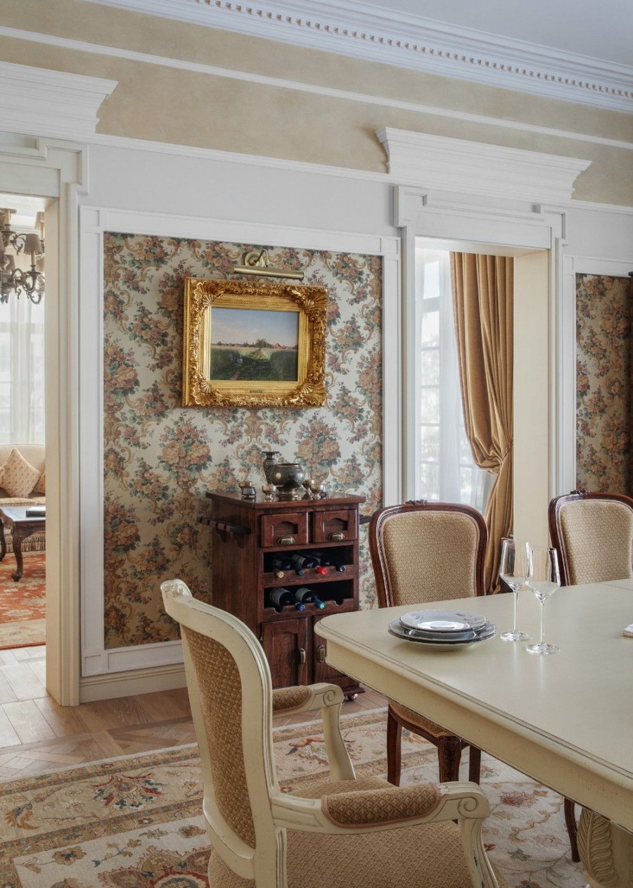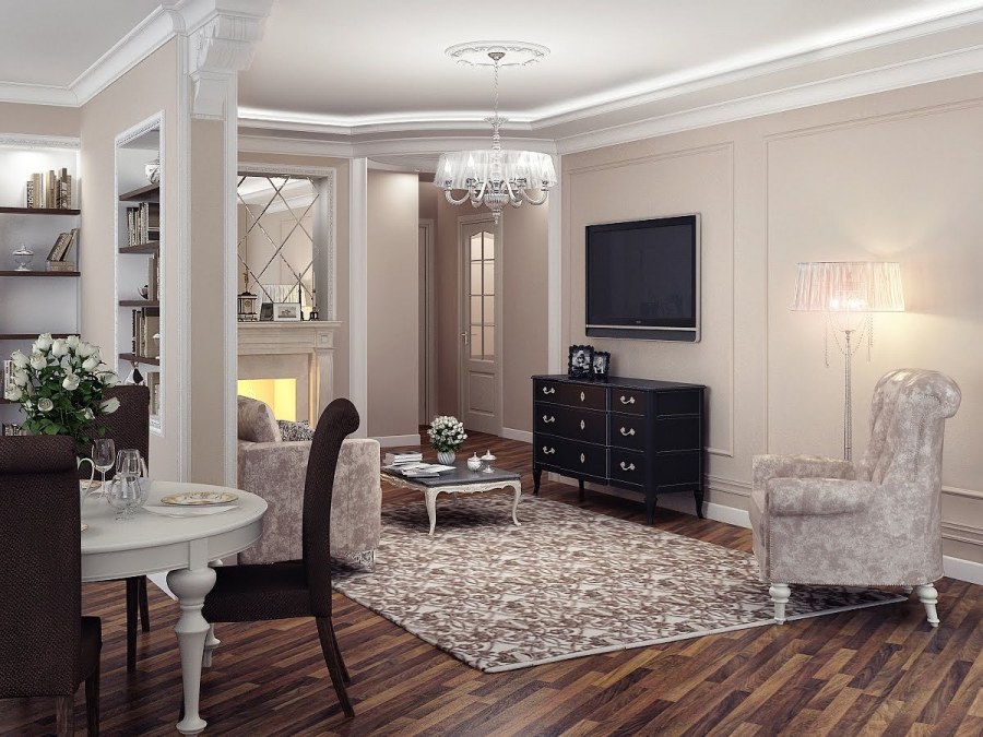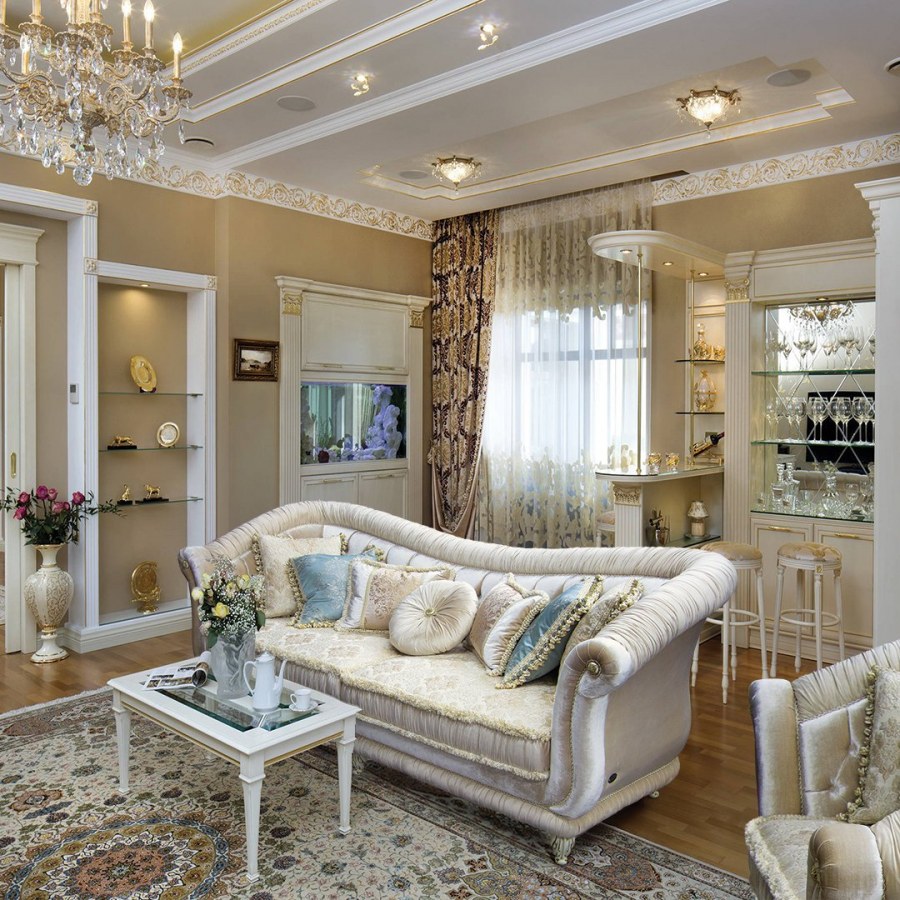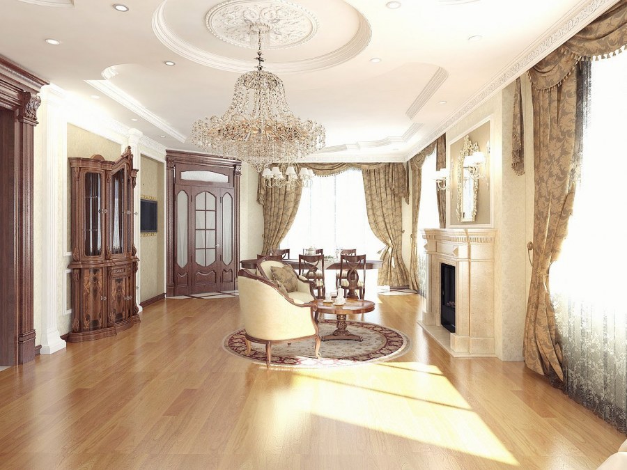 Линкруста в интерьере гостиной в стиле Неоклассика