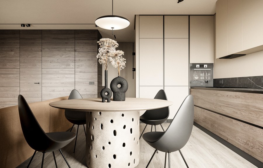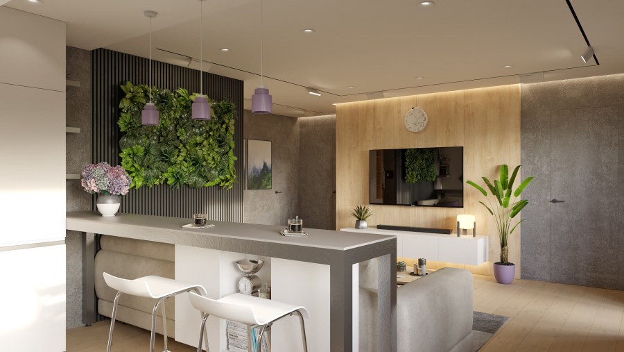 Гостиная совмещенная с кухней в хрущевке в современном стиле