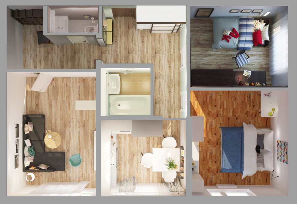 Картинка 2 комнатной квартиры с мебелью и техникой